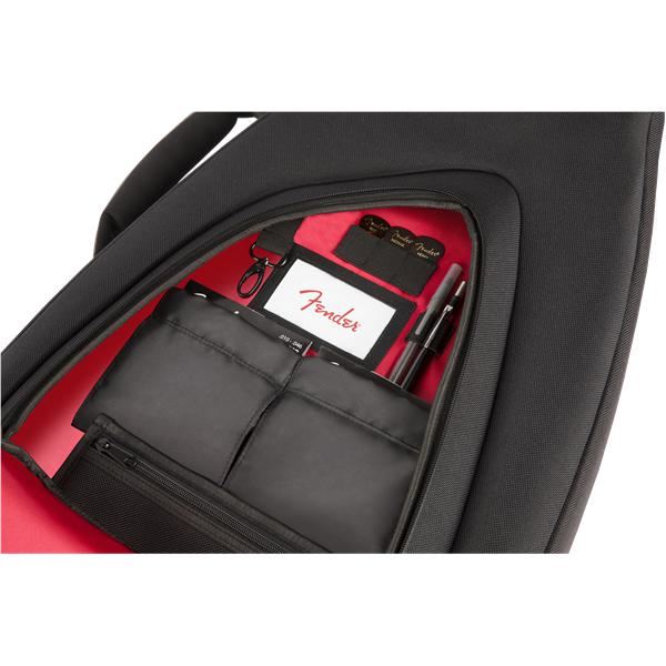 Keep your electric guitar safe and secure during travel with a Fender F1225 gig bag. Constructed from tough 1200 Denier polyester, this bag offers 25mm of cushioning and a soft touch microfiber lining to protect against impacts and finish damage. Adjustable neck rests and reinforced exterior bumpers provide extra protection. Enjoy maximum functionality and peace of mind with Fender.