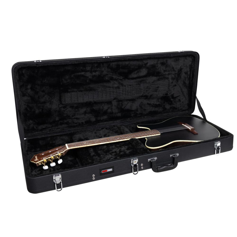 The Gator GWE-TODFRHN Guitar Case protects your Ibanez TOD and FRH Nylon String Guitars with its ultra-durable plywood construction and sleek Black Tolex PVC covering. Ideal for travel and gigging musicians who need a reliable case to keep their guitars safe.