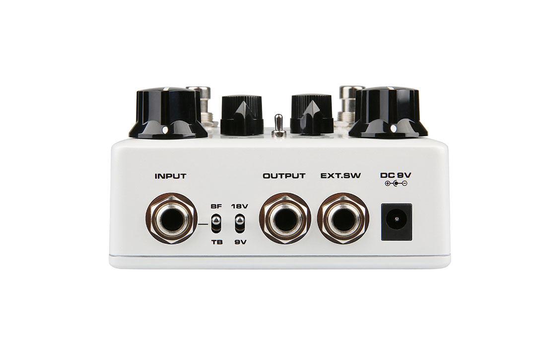 ACE of TONE stacks two overdrives that guitarists know and love. Tubeman MKII offers an increased gain as compared to classic Tubescreamers, and it has FAT mode to enhance the low-end and warmth. Morning Star, based on the Bluesbreaker circuit, is a low-gain, transparent drive. Activate SHINE mode with the footswitch and you'll get a boost of treble.