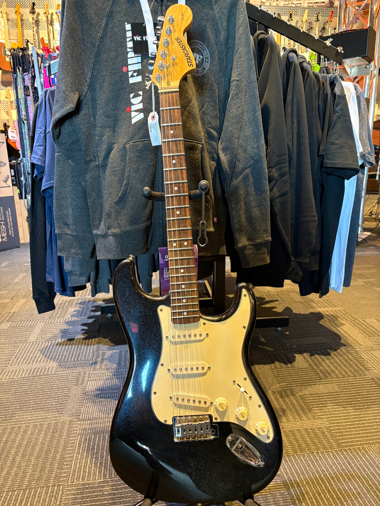 Are you ready to begin your ultimate guitar journey? Unleash the fury of the Squier STARCASTER today, with this beautiful used electric guitar, in a sparkle finish! No longer in production, these guitars have become a hot commodity - and we mean that! Come to our Grand Island location to check out this smooth playing, light weight S-style guitar TODAY!