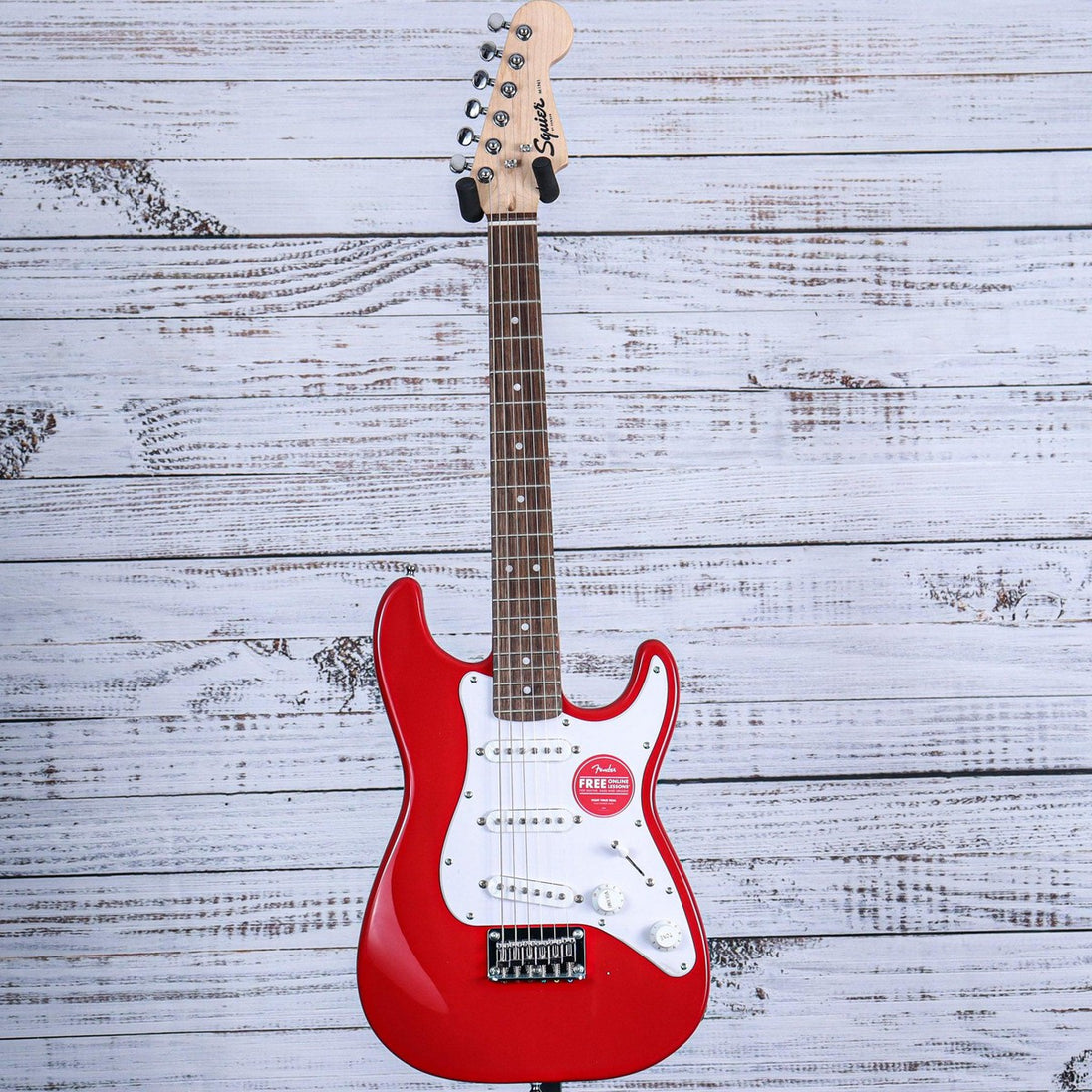 The Squier Mini Stratocaster® is the perfect companion for players seeking a reduced-size instrument with classic styling and familiar Fender® tone. Highlights include a thin and lightweight body, an easy-to-play “C”-shaped neck profile, a trio of Squier single-coil pickups with 5-way switching for sonic variety, and a hardtail bridge for solid tuning stability.