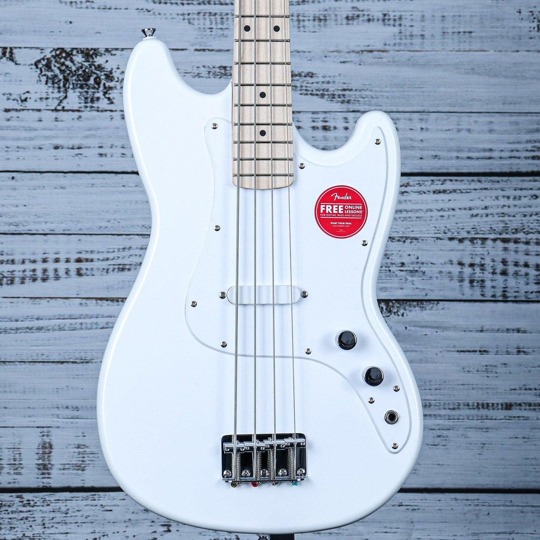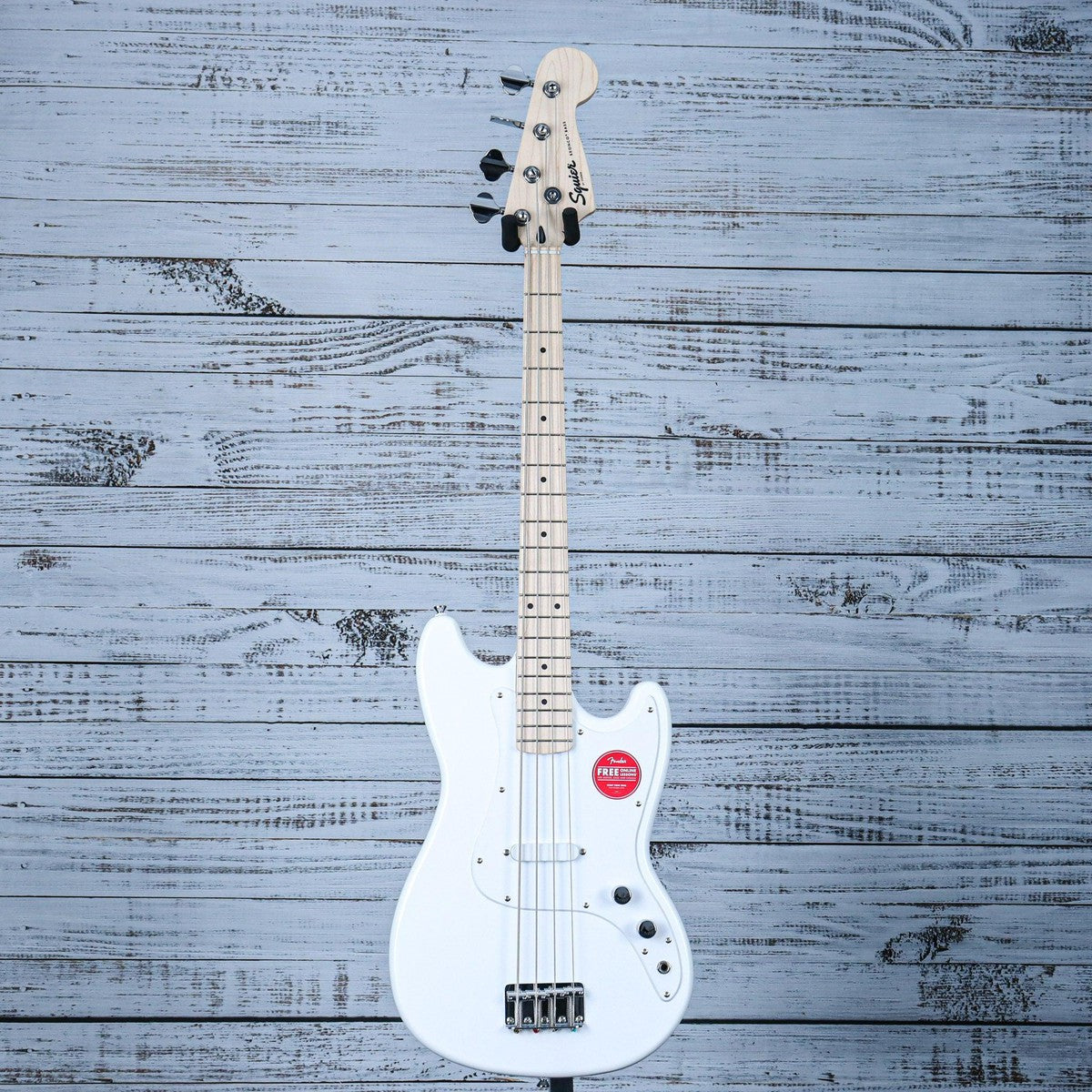 Experience Fender® style and punchy bass tone with the Squier Sonic® Bronco® Bass. Featuring a slim "C"-shaped neck and lightweight body for comfortable playing, a short 30" scale length, and a 4-saddle hardtail bridge for precise intonation. The Squier® single-coil pickup delivers iconic sound and sealed-gear tuning machines ensure smooth and accurate tuning. Perfect for any stage, this Bass is ready to take your musical adventures to warp speed.