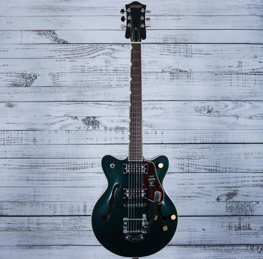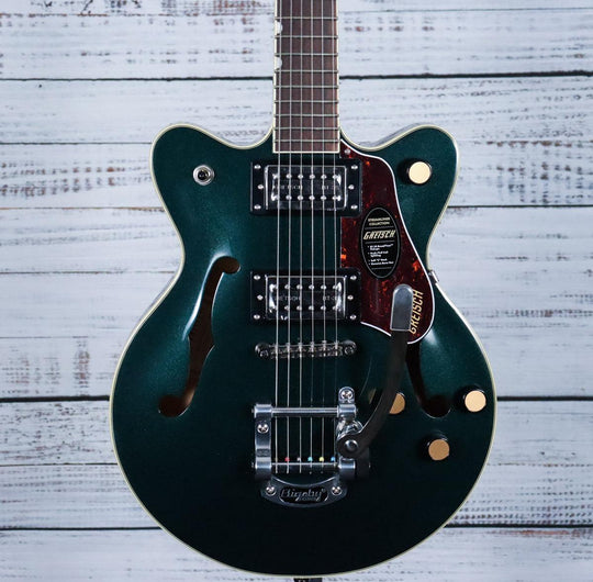 The G2655T Streamliner™ Center Block Jr. Double-Cut with Bigsby® in Cadillac Green offers a compact yet powerful playing experience. Combining classic Gretsch tone with modern enhancements, this guitar delivers rich, dynamic sound and impressive volume. Its...Regular price $ 488.24Regular price $ 488.24