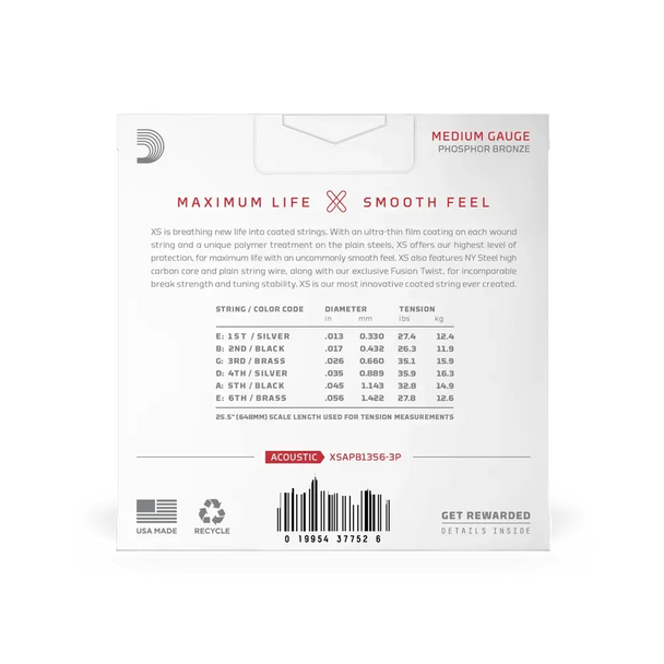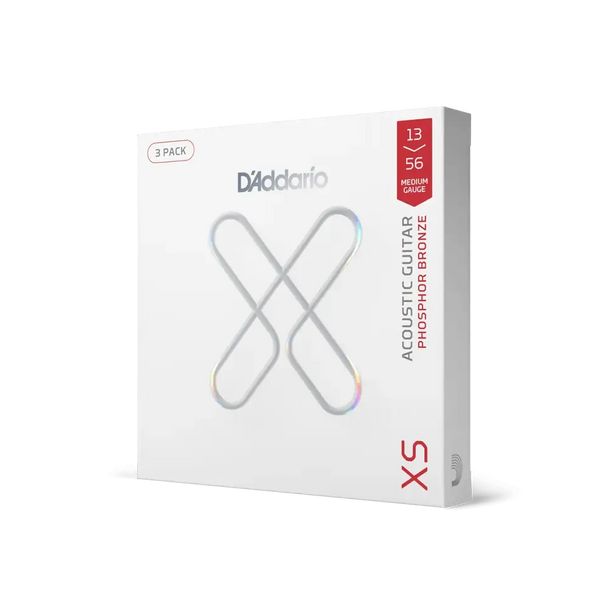 D'Addario XS Coated Phosphor Bronze Acoustic Guitar Strings | 13-56 (Medium) | 3pk