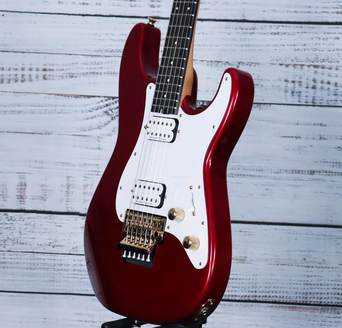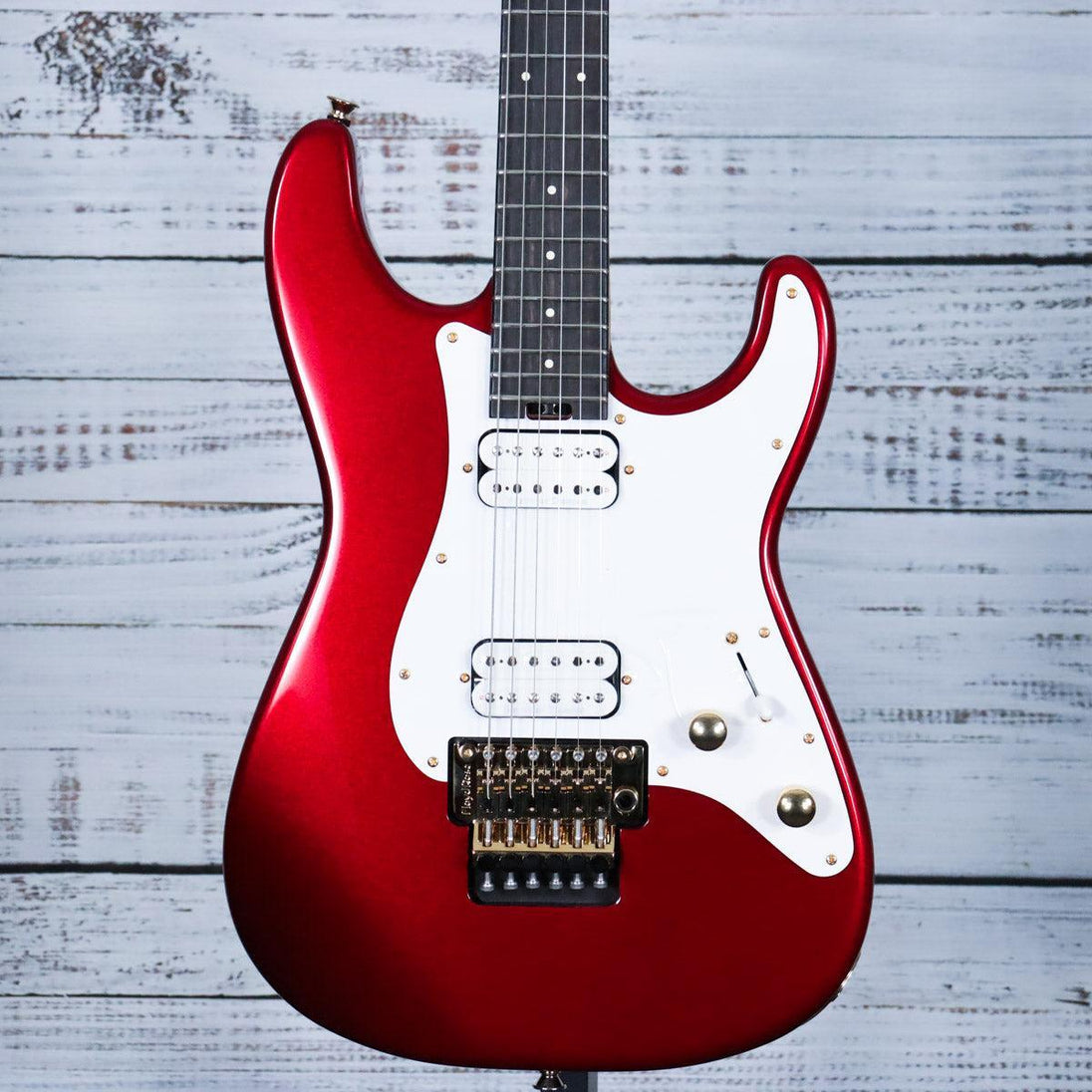 Elevate your playing with the Charvel Pro-Mod Plus So-Cal SC1 Style 1 HH FR in Candy Apple Red. Featuring a caramelized bolt-on maple neck reinforced with graphite rods, it ensures exceptional stability and tuning reliability. The 12"-16" compound radius ebony fingerboard with rolled edges and 22 jumbo frets offers smooth, fast shredding. Its thin D-shaped neck profile enhances speed, while Luminlay side-dots provide visibility in low light. Equipped with Seymour Duncan Distortion humbuckers, this guitar delivers powerful, articulate tones perfect for demanding styles and precision playing.