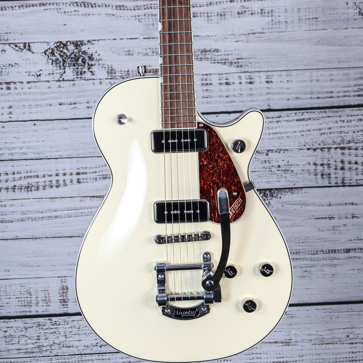 G5210T-P90 Electromatic Jet Two 90 Single-Cut with Bigsby® is the ideal Gretsch instrument, delivering real, pure and powerful sounds at an accessible price. It embodies the essential Jet power and fidelity with Gretsch's signature sound, style, and playability.