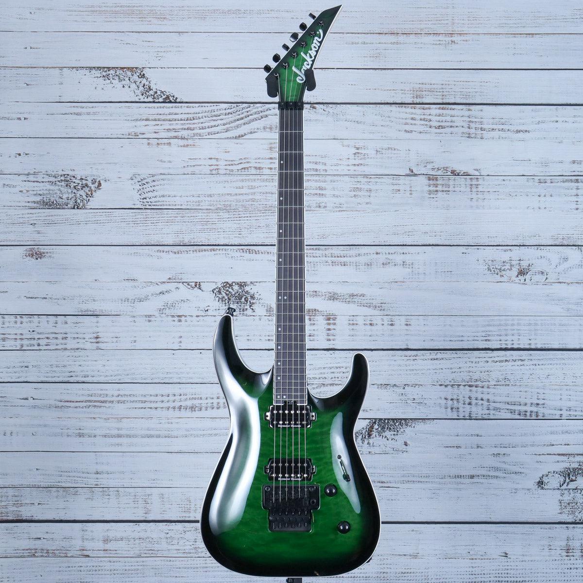 Unleash your inner shredder with Jackson's Pro Plus Series Dinky DKAQ. Experience exceptional vibe and performance with premium features, making it the ultimate guitar for all your shredding needs. Available in stunning Emerald Green.
