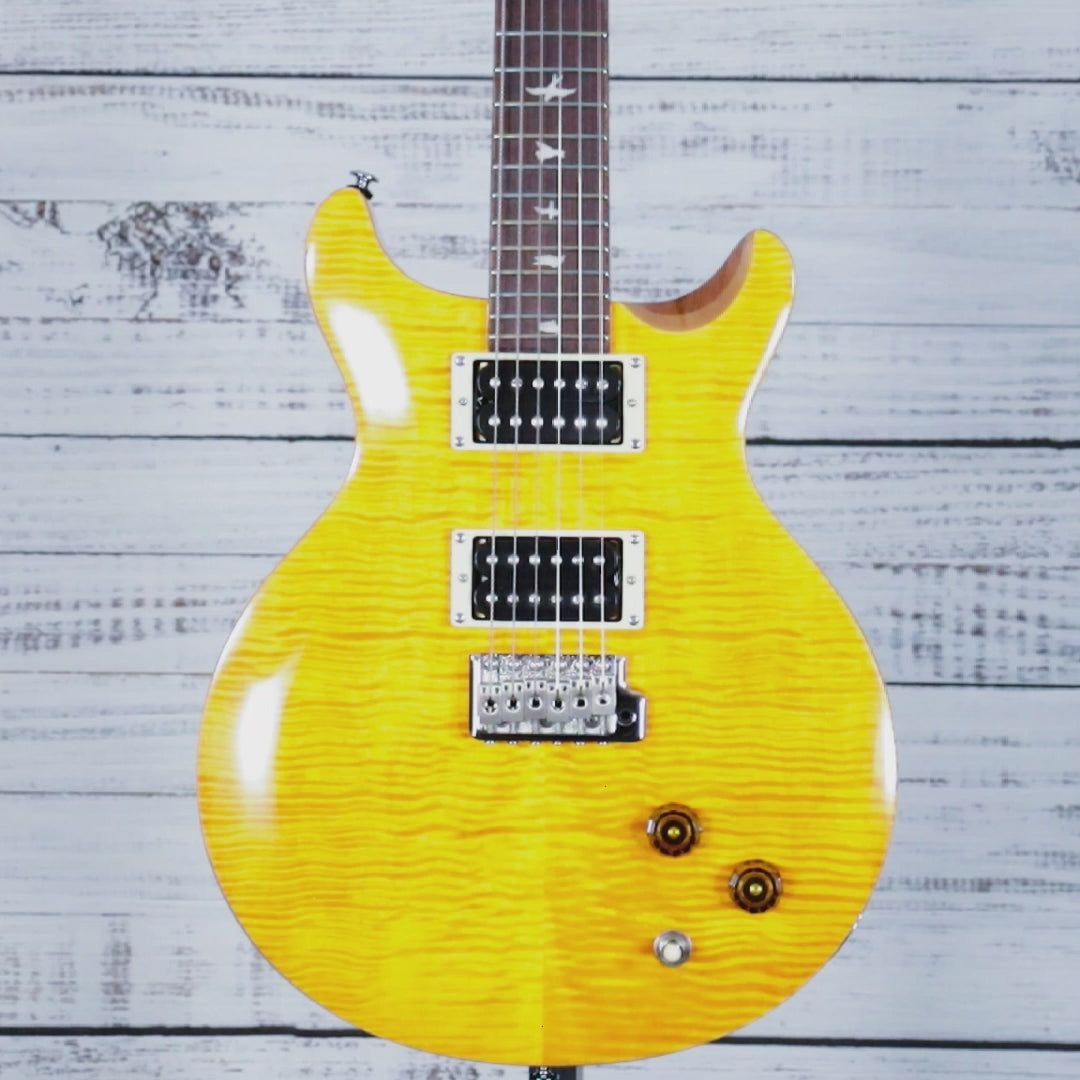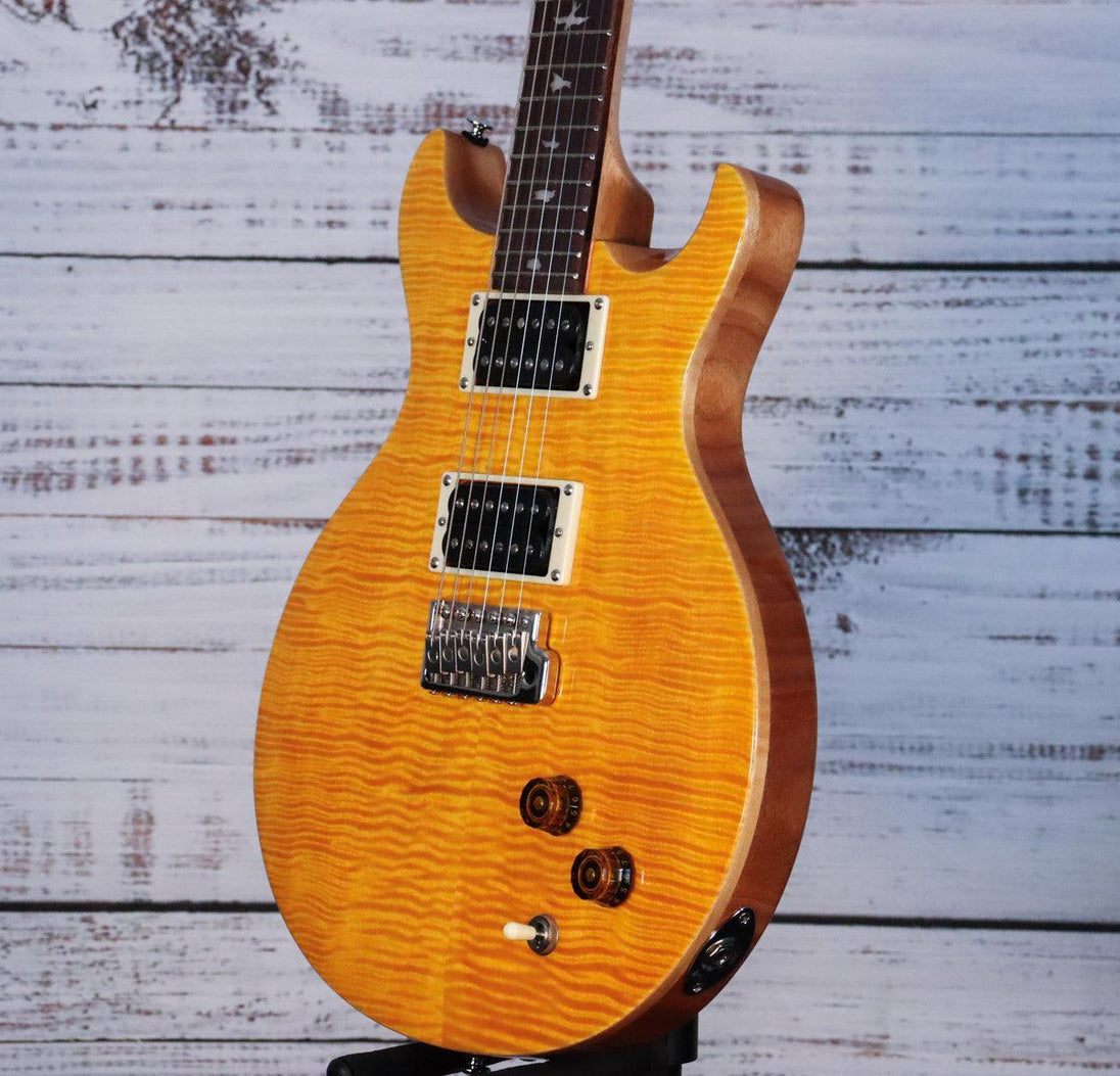 Carlos Santana’s influence as a PRS artist led to the development of our SE electric guitar series, which launched in 2001. In honor of that legacy, PRS is proud to offer the SE Santana model. The SE Santana features a 24.5” scale length on a 24 fret neck, the PRS patented molded tremolo, Santana "S" humbuckers, and the same Santana body shape silhouette as Santana’s revered American-made PRS models. We believe this guitar and its appointments honor Santana’s skill and style better than ever and offer players great quality and value. Be sure to try an SE Santana at an authorized dealer near you.