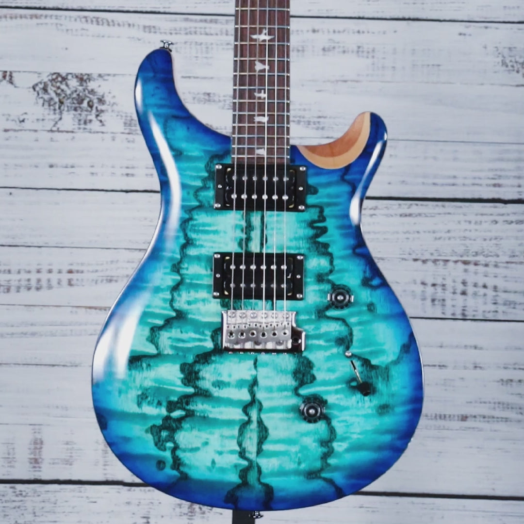 The PRS SE Custom 24 Burled Ash Limited Edition boasts a unique burled ash veneer and the original Custom 24's versatility. Featuring PRS 85/15 "S" pickups, push/pull tone control for single-coil options, and a maple top, mahogany back, and Wide Thin maple neck, this well-crafted instrument delivers exceptional sound and performance capabilities.