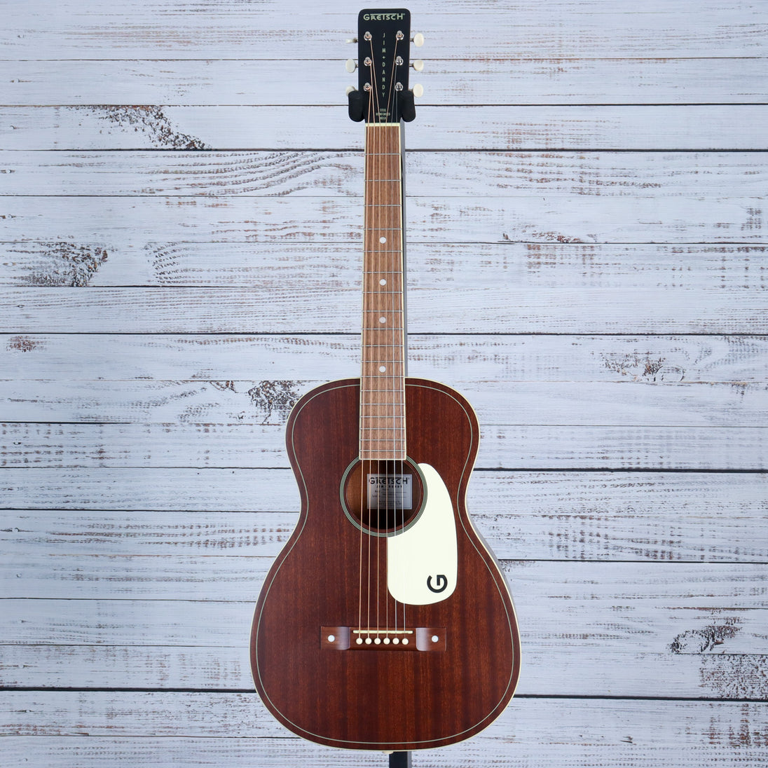 The Gretsch Jim Dandy Parlor Guitar in Frontier Stain pays tribute to the classic "Rex" line of mail-order instruments from the 1930s-1950s. With a petite parlor body and short scale length, it delivers superior playability and best-in-class tone. Made with lightweight laminate tonewoods and a comfortable "C"-shape neck, it's perfect for old-timey inspiration.