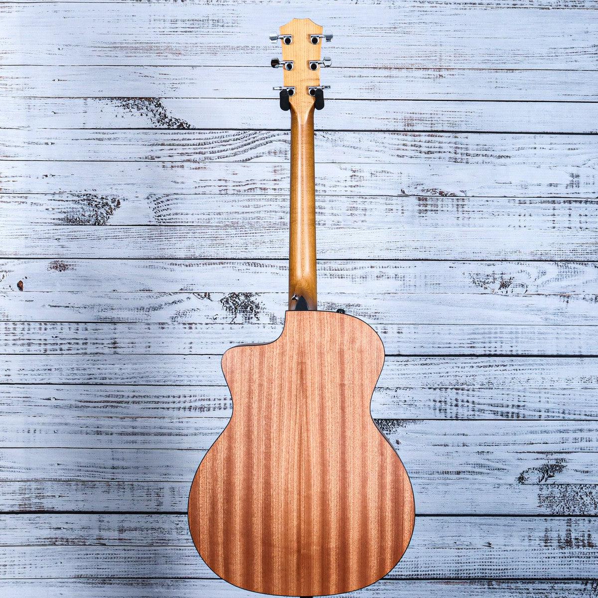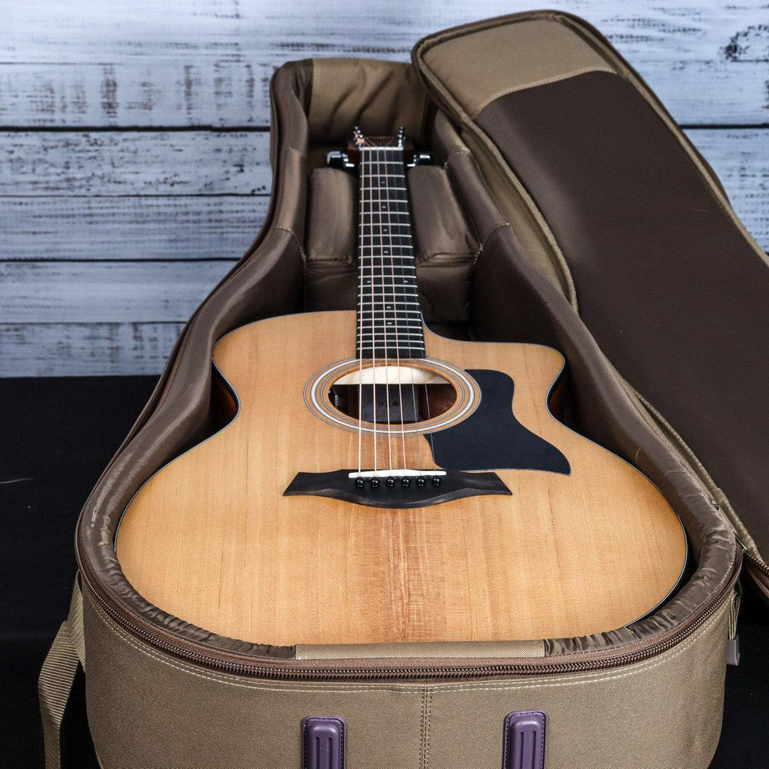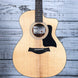 This acoustic/electric Grand Auditorium features a layered walnut back and sides combined with a solid Sitka spruce top, creating a versatile acoustic with excellent responsiveness to strumming, fingerpicking, and flatpicking. With our patented Taylor neck, you can expect smooth and accurate playability for the life of the guitar. The slightly narrower 1-11/16-inch nut width also makes it easier to form barre chords. The Venetian cutaway provides increased access to the upper frets, and the Expression System 2 pickup delivers a natural amplified sound that showcases your playing. The clean design includes Italian acrylic dot fretboard inlays, a 3-ring rosette, and black binding and pickguard that complement the genuine ebony fretboard and bridge. A lightweight protective gig bag is included for easy transportation.