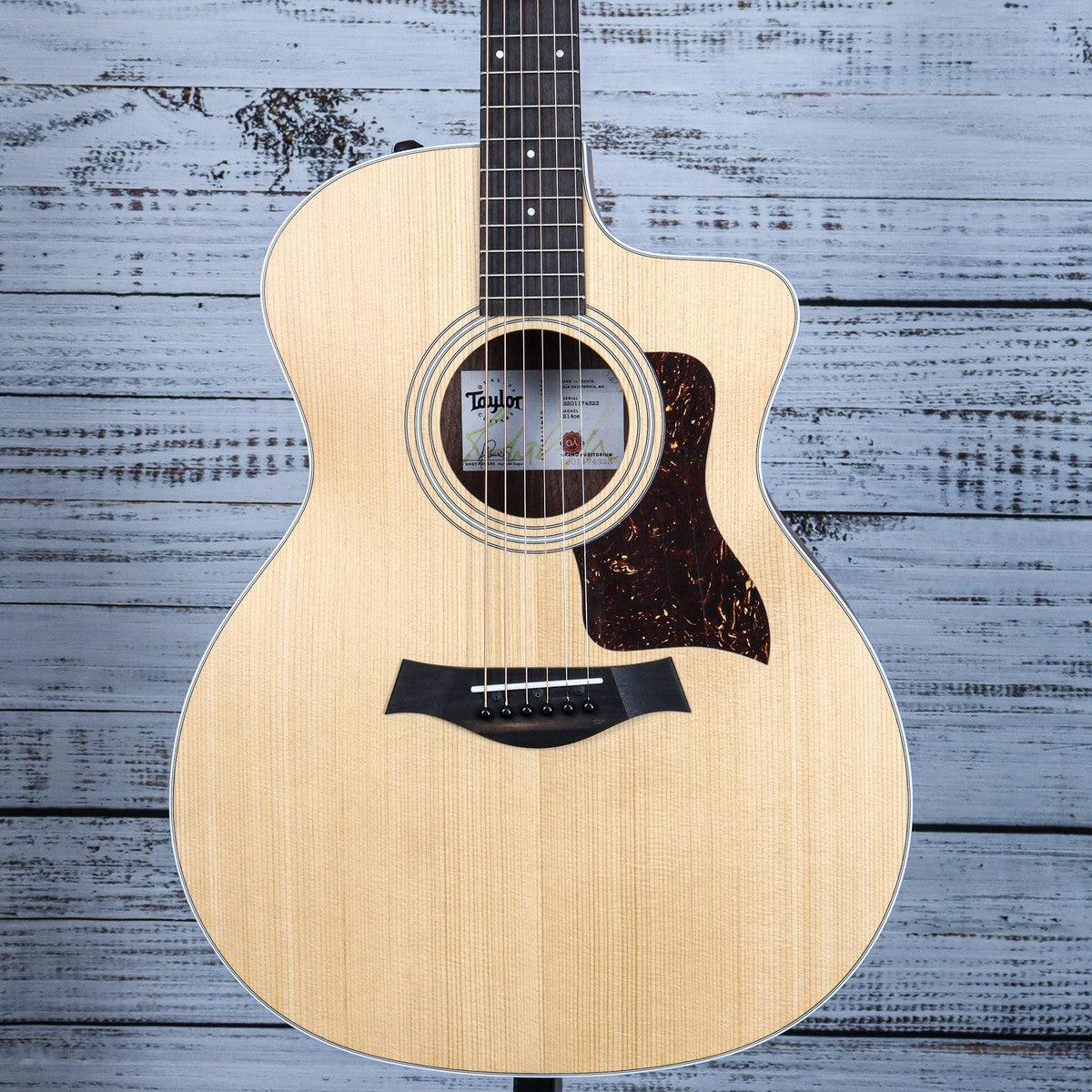 The 200 Series is popular among guitar players of all levels, from beginners to professionals. Its solid Sitka spruce top produces a bold, powerful sound with clear projection and warmth, enhanced by the layered rosewood back and sides. The Taylor Neck design allows for easy fretting, and the Venetian cutaway enables quick access to the highest frets. For amplified performances, the onboard ES2 pickup offers clean and authentic acoustic tone, making it perfect for playing with other musicians or solo gigs. This Grand Auditorium acoustic-electric guitar comes with a protective padded gig bag for convenient transportation.