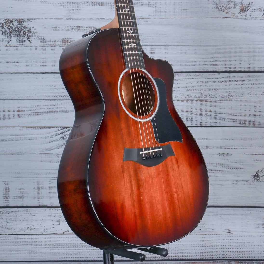 The Taylor 222ce-K DLX Acoustic Guitar delivers a stunning appearance with its Hawaiian koa back, sides, and top. The solid top produces a rich, warm sound that improves with age. Its compact body and narrow nut width provide a comfortable playing experience, while the full-body gloss finish and gold hardware add a touch of elegance. Equipped with ES2 electronics and a hardshell case, this guitar is ready for any performance or recording session.