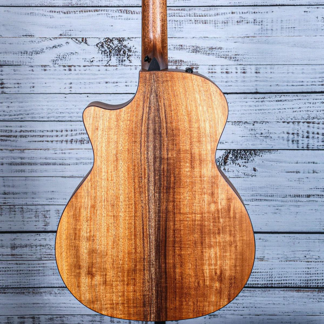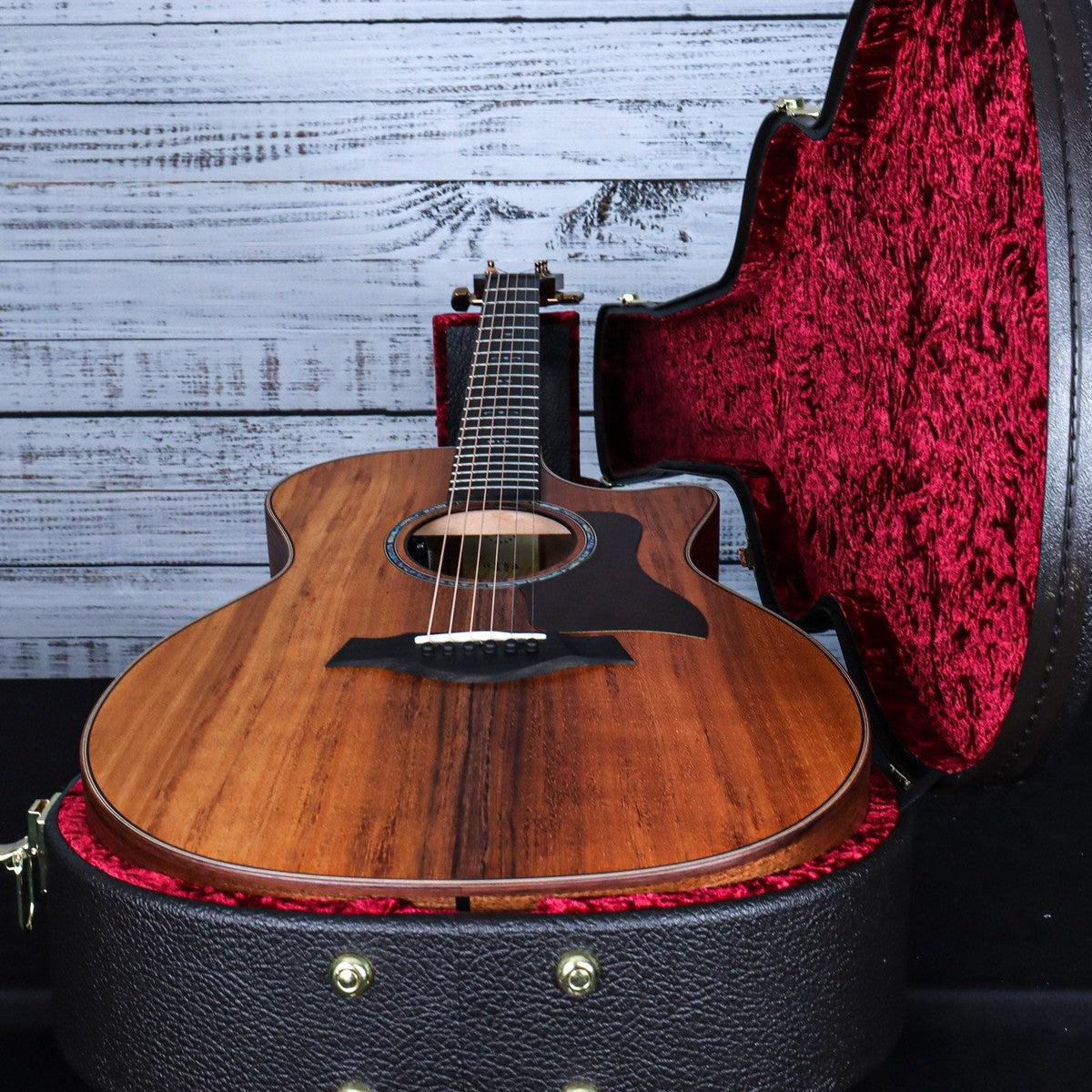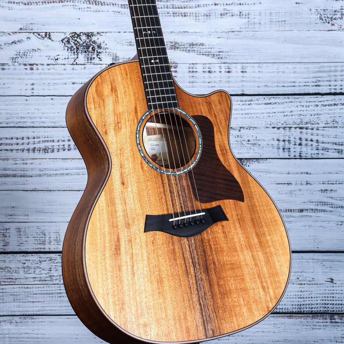 The latest addition to the Taylor 700 Series, the 724ce brings a fresh perspective with the inclusion of premium-quality Hawaiian koa. This Grand Auditorium model showcases a solid Hawaiian koa back, sides, and top, chosen not only for its stunning appearance but also for its powerful and lively sound. Experience a dynamic attack, clear highs, a warm midrange, and a developing bass over time. The ultra-thin matte finish adds a raw, natural feel, accentuated by elegant mother-of-pearl Fountain inlays, rosewood binding, a paua shell rosette, and a richly stained maple pickguard. It also features the ES2 acoustic pickup and comes with a deluxe hardshell guitar case for storage and protection.