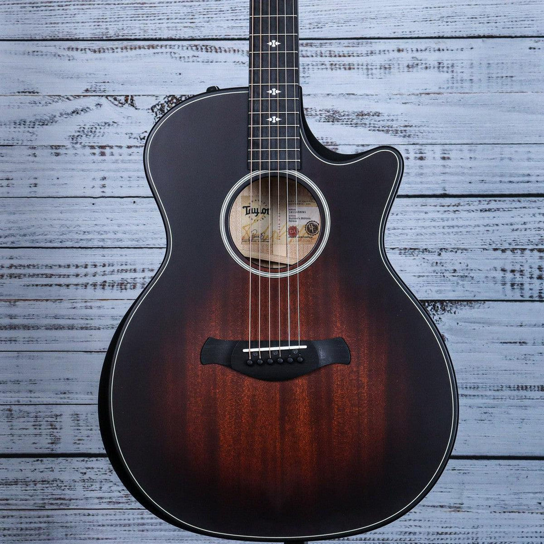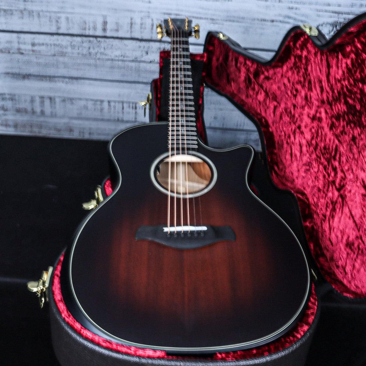 Experience ultimate playability and rich tones with the Taylor Builder's Edition 324ce. The responsibly sourced Urban Ash tonewood creates a warm, woody sound with a strong focus on the fundamental note. The Grand Auditorium design features a beveled armrest and cutaway for comfort while the Silent Satin finish reduces noise. Complete with a deluxe hardshell case.