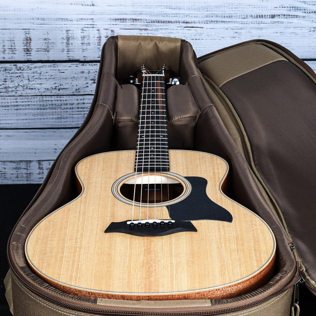 The Taylor GS Mini Sapele Acoustic Guitar is the perfect blend of portability and quality tone. Its solid Sitka spruce top and layered sapele back and sides provide a bold and clear sound, while the slender neck profile and low action make it comfortable for players of all levels. Ideal for traveling, it also comes with a gig bag for convenience.