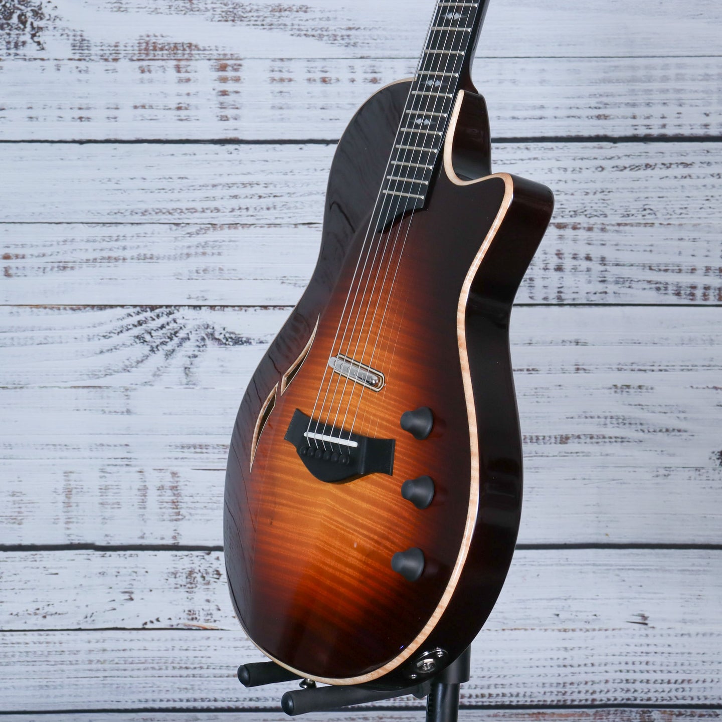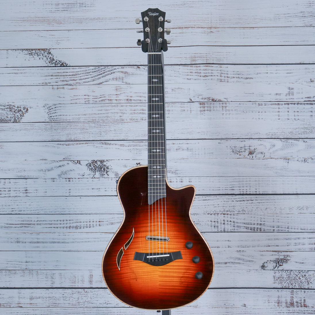 Unleash limitless creativity with the versatile Taylor T5z Pro Guitar in Tobacco Sunburst. Its hybrid hollowbody construction, active tone circuitry, and dual humbuckers deliver a wide range of rich tones, from searing electric leads to warm acoustic melodies. Crafted for comfort with an Urban Ash body and ebony fretboard.