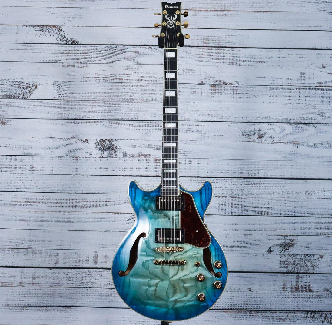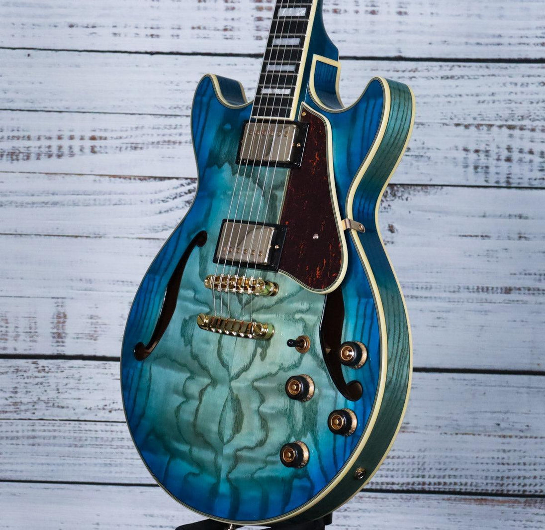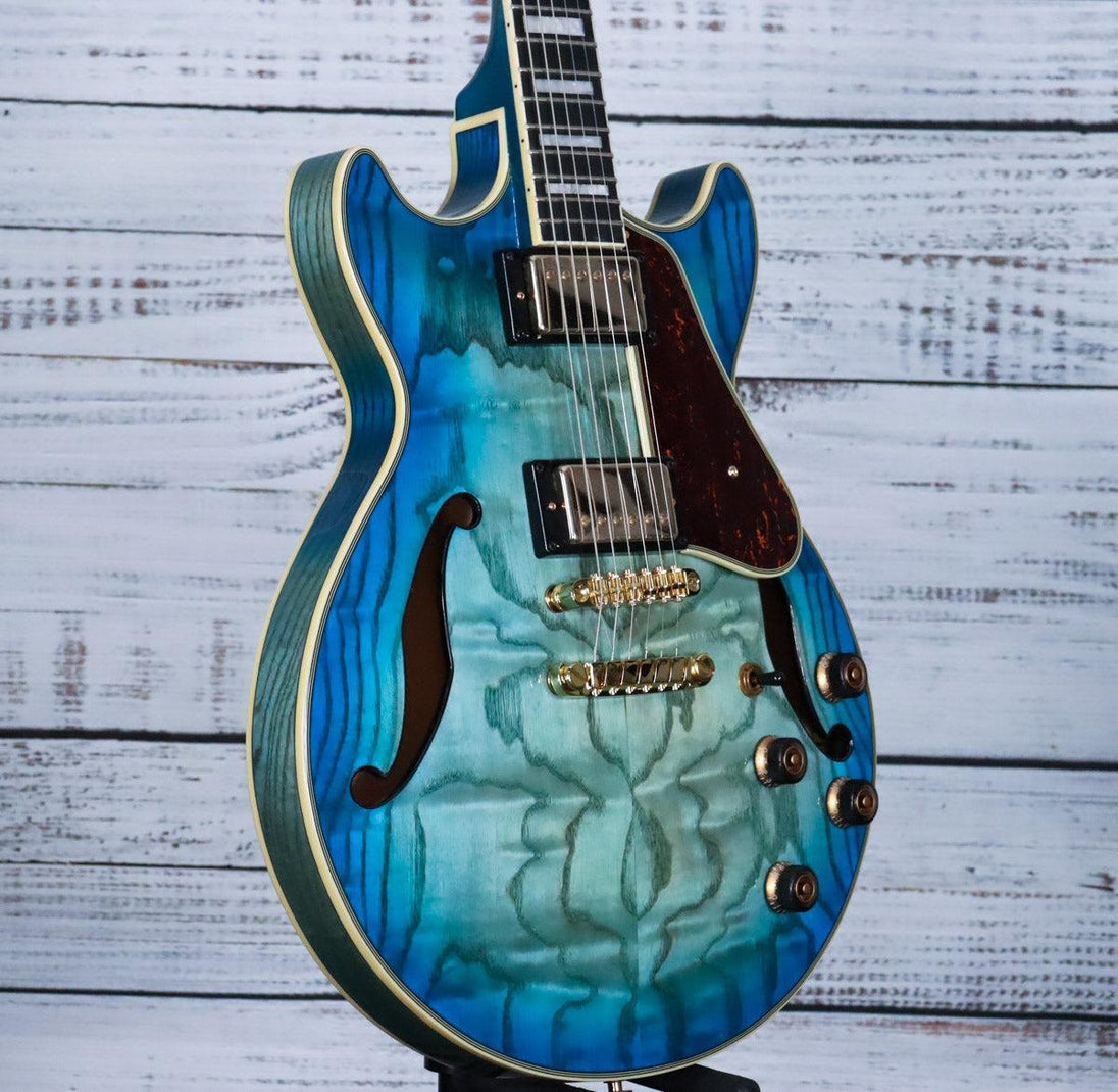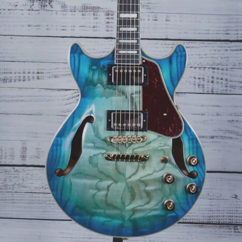 Ibanez continues to shape the hollow-body guitar landscape with the Artcore Expressionist line, blending modern innovation with timeless jazz tradition. This AM93QA features the legendary Super 58 pickup—the same choice trusted by jazz icons George Benson, Pat Metheny, and John Scofield. Known for warmth, balanced articulation, and responsive tone, the Super 58 excels across multiple playing styles, from authentic jazz to contemporary applications. The Jet Blue Burst finish adds visual elegance to a guitar built for serious players seeking both classic character and versatile performance.
