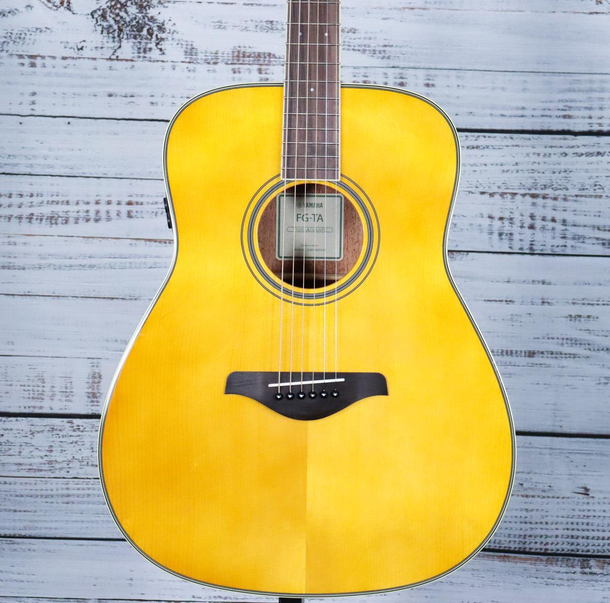 Yamaha FG-TA TransAcoustic guitars transport you to new creative spaces with immersive reverb and lush chorus effects without needing an amp or other external gear. For the singer/songwriter in you, the FG-TA features a combination of solid spruce top, mahogany back and sides and scalloped bracing to create warmth, resonance and a bold sound.