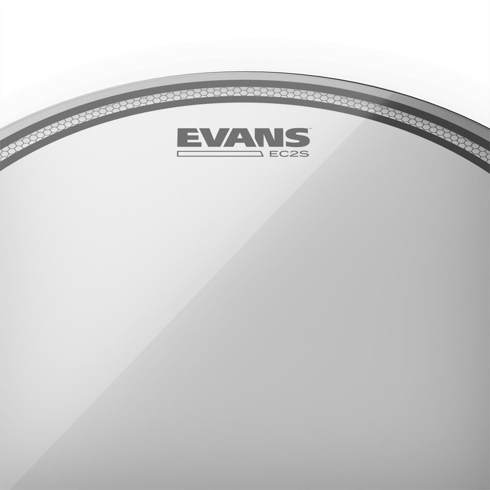 EVANS EC2S clear tom heads deliver a tight sound with reduced high frequencies and enhanced attack, thanks to the Sound Shaping Technology (SST) rings on the underside.