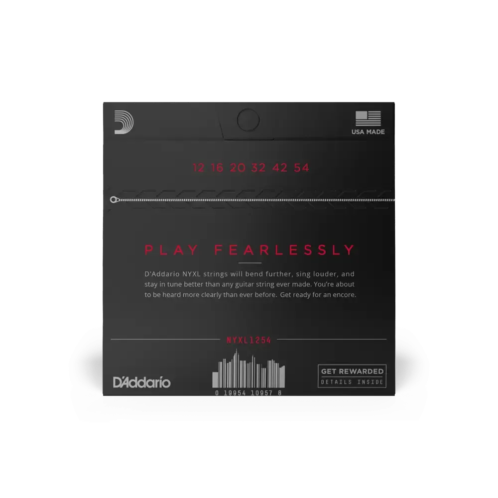 NYXLs will bend farther, sing louder, and stay in tune better than any string you’ve played before. As D'Addario's premium uncoated electric string, NYXLs offer higher break strength, enhanced tuning stability, and accentuated mid-range frequency response, providing more presence and crunch to cut through the mix. Made with a NY Steel core, premium nickel-plated steel wrap wire, and Fusion Twist technology, NYXL electric guitar strings are tough enough and versatile enough to handle anything.