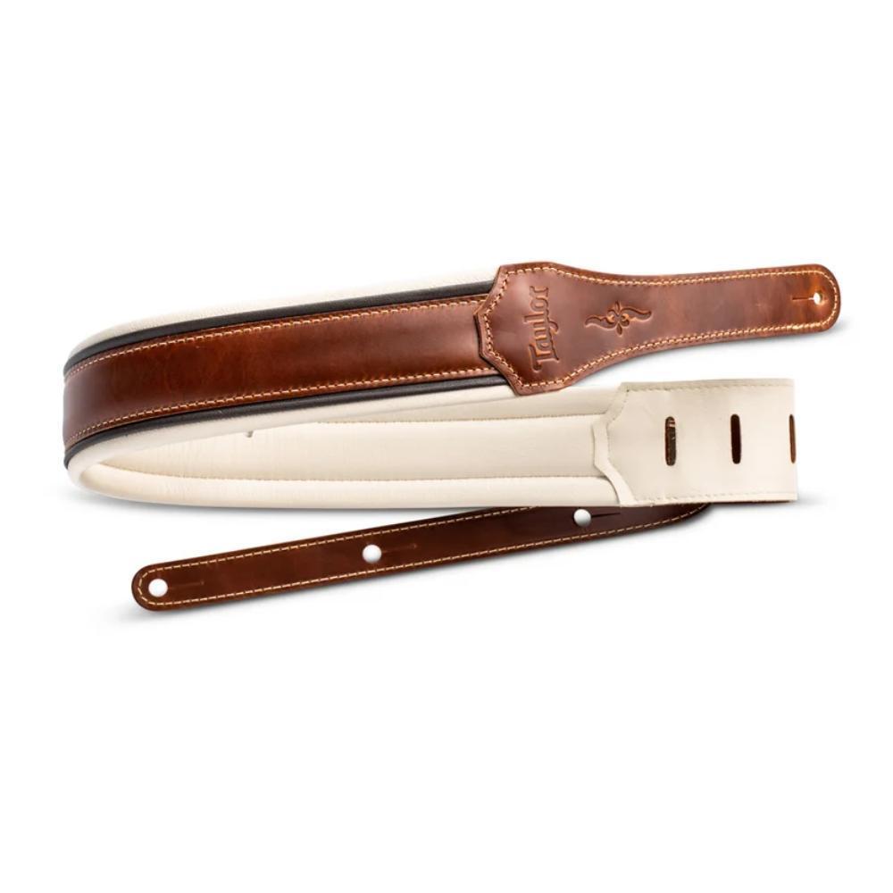 The Taylor Renaissance Leather Guitar Strap offers a choice of two classic color options: Medium Brown or Cordovan, both of which feature black and ivory leather trim. Both color options are artfully designed to complement guitars from the Taylor 400 Series, but it looks great alongside any acoustic guitar. This strap also features an embossed Taylor logo, and at 2.5" wide, it provides the perfect balance of comfort and support.