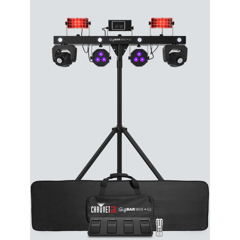 GigBAR Move + ILS is the foremost lighting synchronization system available. This cutting-edge member of the GigBAR family is compatible with the Integrated Lighting System (ILS) and can control any ILS-enabled fixture - wired or wirelessly. It offers a 5-in-1 system of moving heads, derbies, washes, laser and strobe, all conveniently pre-mounted on one bar. Easily accessible 32-watt moving head functions are reachable from the full-color LCD display and Totem Mode tracks the moving heads on the dance floor. Plus, UV LEDs to illuminate florescent objects are built-in. With GigBAR Move + ILS, you can fine-tune each effect to get the look you want - no line-of-sight remote needed! The package comes with a tripod, wireless footswitch, RF remote and FREE carry bags for smooth setup.