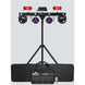 - 5-in-1 lighting system that includes moving heads, derbies, washes, a laser and strobe effect pre-mounted on a single bar