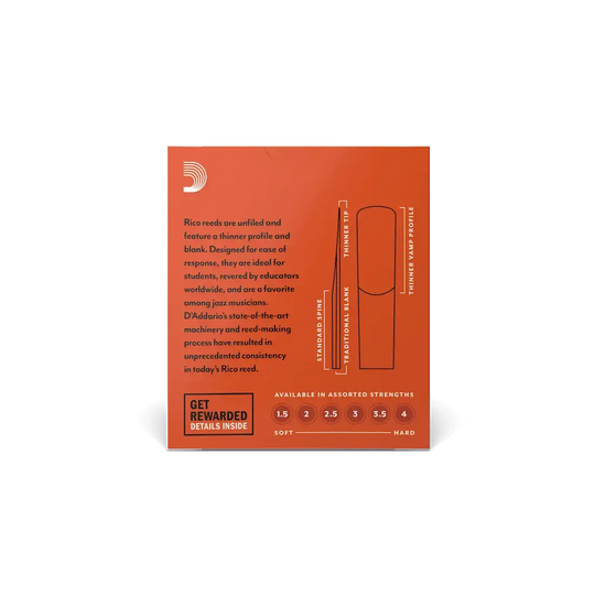 Rico by D'Addario Alto Saxophone reeds are crafted with beginners and educators in mind, thanks to their traditional blank and profile for ease of response, plus unfiled cut for added support. These reeds are available for...Regular price $ 30.99Regular price $ 30.99 -