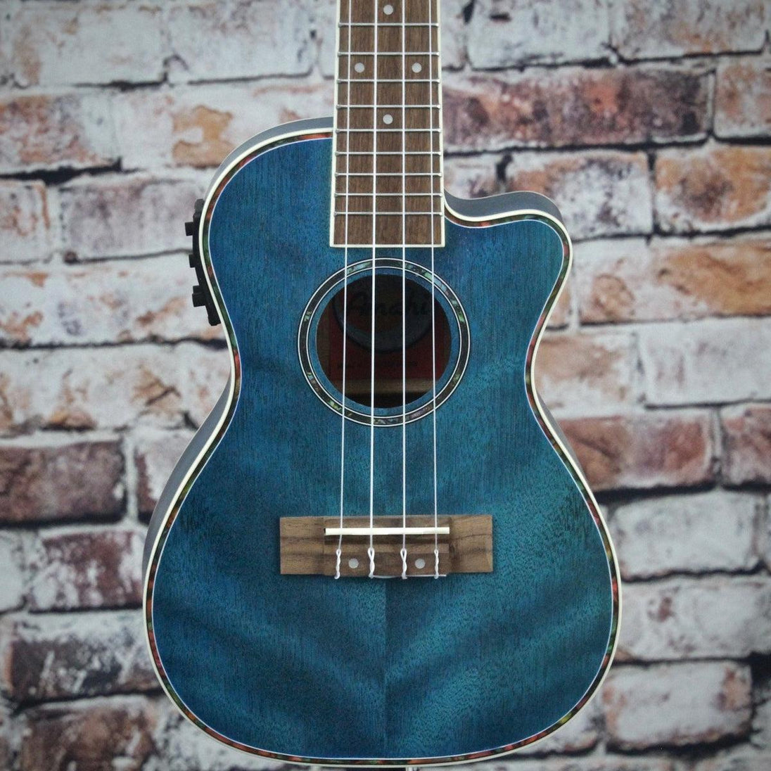 The Amahi UK-205EQ is a mid-line concert ukulele with on-board electronics including, EQ, Preamp, and Digital Tuner. Solid construction and deluxe 10mm padded bag, make this ukulele road-worthy and gig ready!