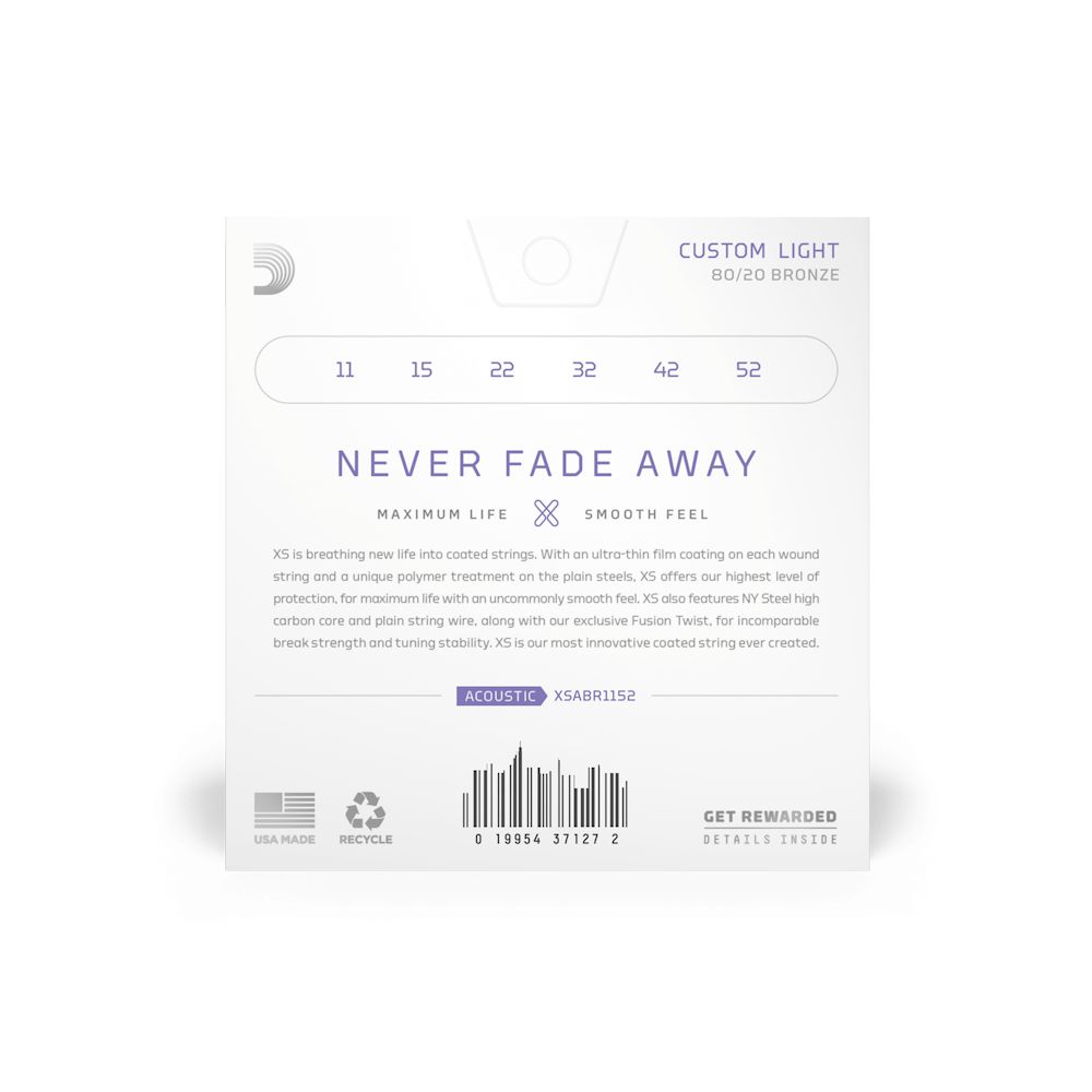 80/20 Bronze are our brightest acoustic guitar strings, made to give your tone an unparalleled shine. With the addition of our revolutionary XS coating, our bold, bright 80/20 strings obtain maximum life, with an uncommonly smooth feel. Made with a NY Steel core, 80/20 Bronze wrap wire, and Fusion Twist technology, these coated acoustic guitar strings have enhanced break strength and tuning stability over standard 80/20s, in addition to a dramatically increased lifespan. This 11-52 Custom Light gauge set has slightly more volume and projection than Extra Light, while still being easy to play.
