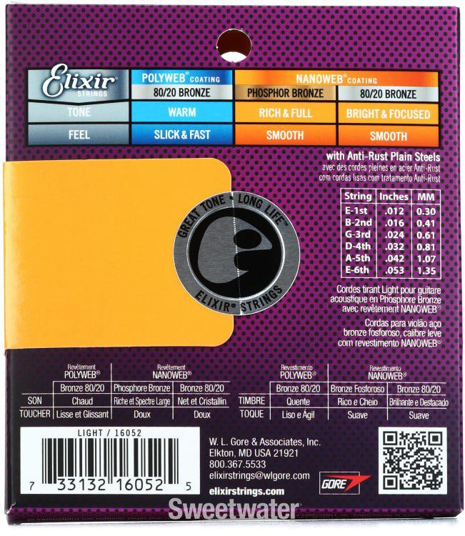 Elixir Nanoweb Phosphor Bronze Coated Acoustic Guitar Strings | Extra Light | 10-47