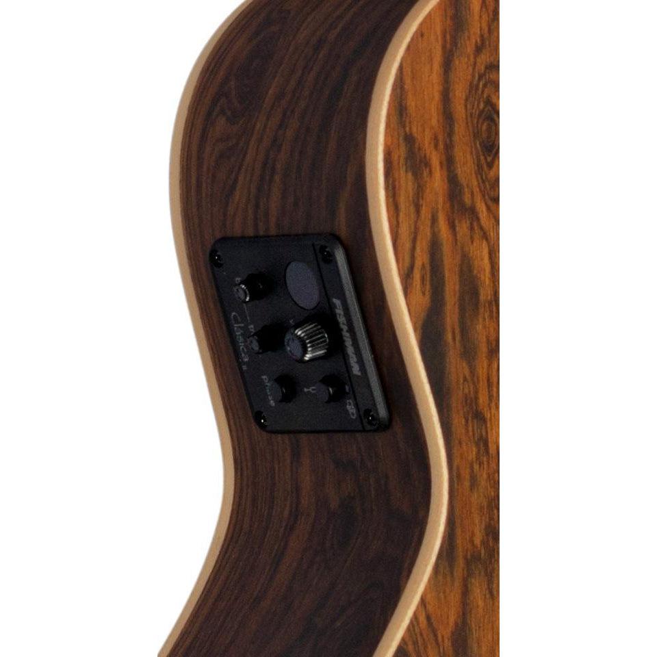 A Lanikai Figured Bocote Bass ukulele utilizes many features such as a truss rod for easy action adjustments, Fishman pickup with tuner, a comfortable neck profile, select wood, smooth action Black open back tuners, NuBone XB nut and saddle, DAddario strings, satin finish, a padded gig bag and a Limited Lifetime Warranty. Each Figured Bocote ukulele has unique graining that makes each instrument a work of art.