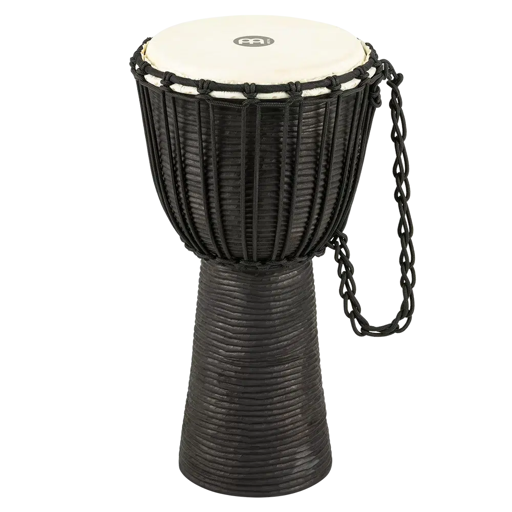 Meinl's Rope Tuned Headliner Series Djembe is a premium instrument made from 100% plantation grown Mahogany wood and hand-selected goat skin. The elegant Black River motif adds an eye-catching aesthetic and provides a comfortable grip for your knees. The Mali Weave system ensures the head is securely and accurately tuned for perfect sound.