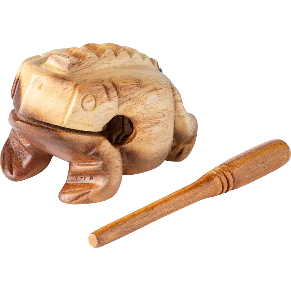 Add some fun to your child's musical experience with the NINO® Percussion Wood Frog Güiro! Its ribbed back creates a playful "ribbit" sound when scraped with the wooden scraper. The warm and mellow tone blends well with other instruments for classroom use, or kids can enjoy playing it at home.