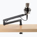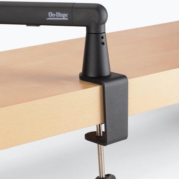 The On-Stage Low-Profile Broadcast Boom Arm offers smooth, silent maneuverability for precise microphone placement during podcasts, live streams, or remote collaboration. Its unique design extends from below, minimizing visual distractions for a cleaner setup. Compatible with most dynamic and condenser microphones, it includes a versatile 5/8"-27 threaded stem that supports clips, shock mounts, and accessories like phone holders and ring lights. Both arm shafts swivel 360 degrees, giving you effortless control to achieve the perfect angle every time. Enhance your recording or streaming experience with this professional, space-saving boom arm.