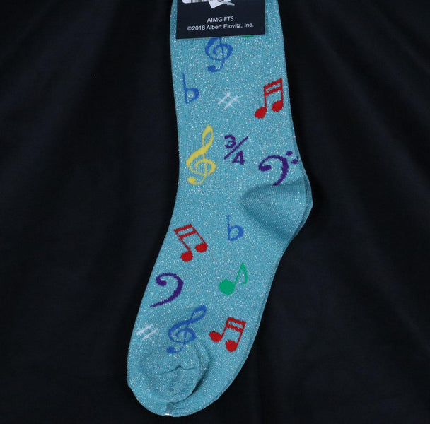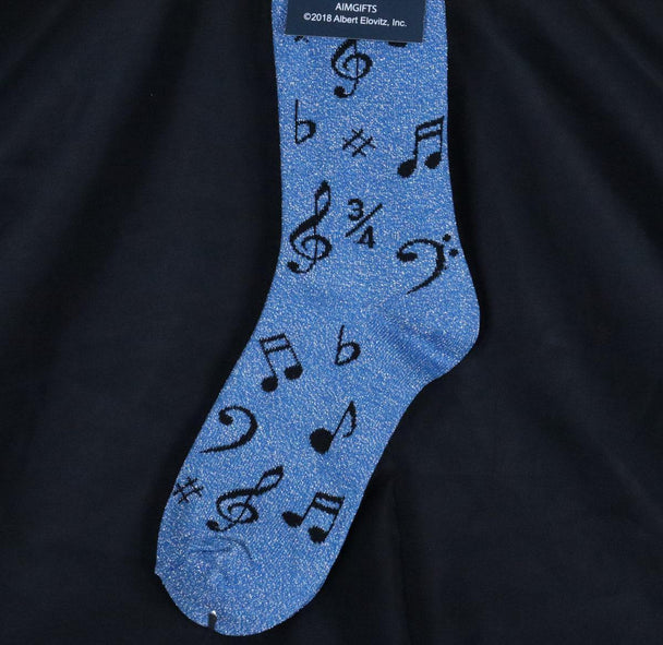 Aim Gifts | Metallic Blue Socks with Black Notes
