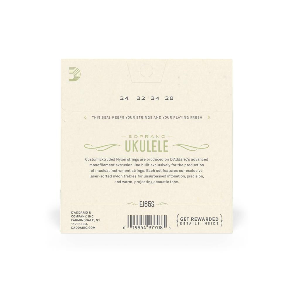 EJ65S is a string set for soprano ukulele, utilizing Pro-Arté Nylon trebles. Pro-Arté Custom Extruded Nylon sets the standard in terms of ukulele tone, intonation, and dynamic response.