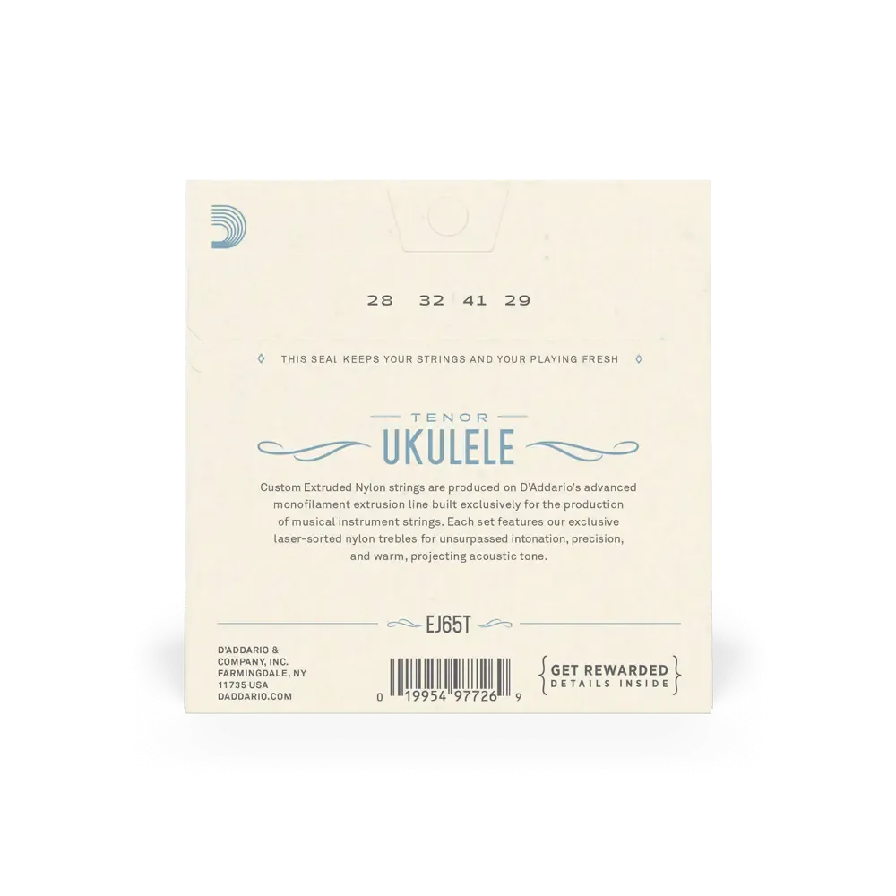 EJ65T is a string set for tenor ukulele, utilizing Pro-Arté Nylon trebles. Pro-Arté Custom Extruded Nylon sets the standard in terms of ukulele tone, intonation, and dynamic response.
