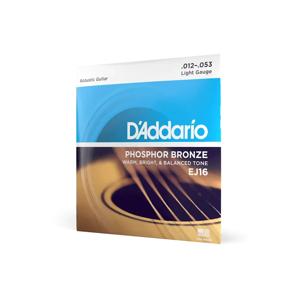 - D'Addario EJ16 Phosphor Bronze Acoustic Guitar Strings are crafted with precision in their New York-based production facility.