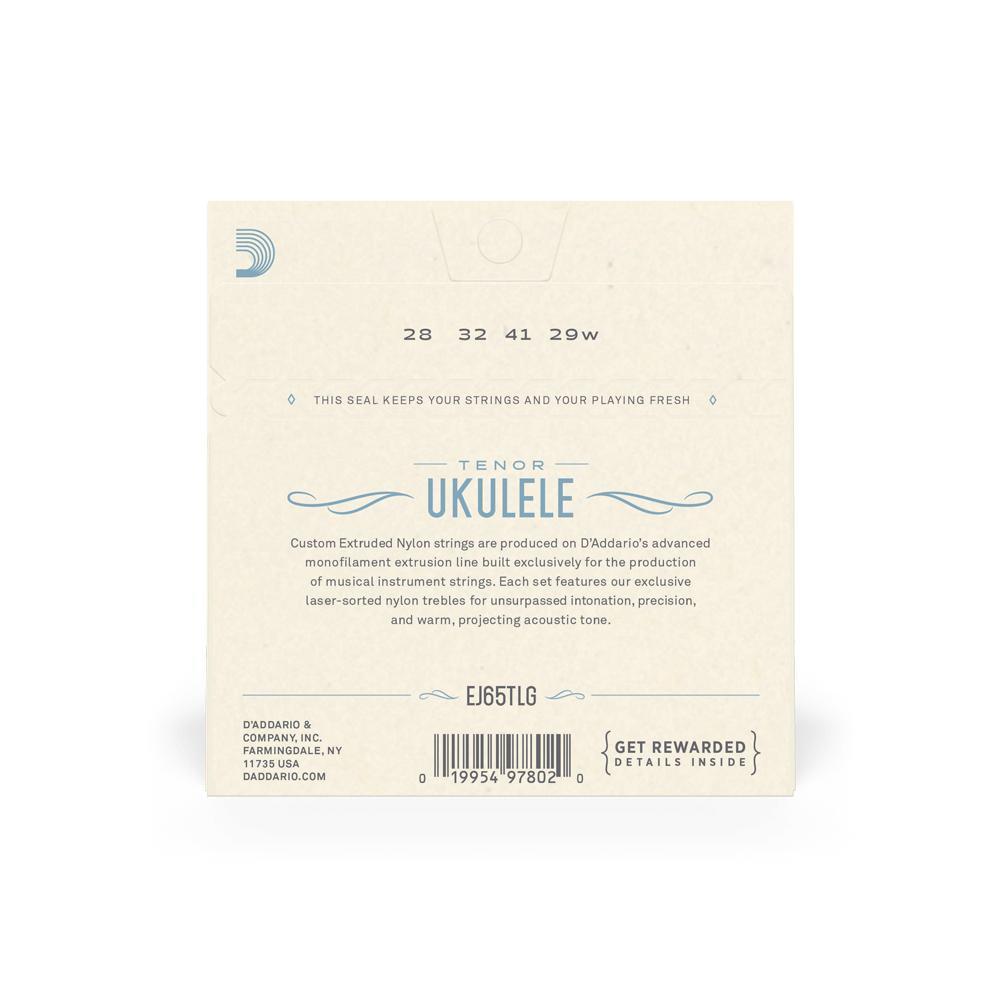 EJ65T is a string set for tenor ukulele, utilizing a silver-plated-copper wound G string and Pro-Arté Nylon trebles for the C, E, and A string for a low-G tuning. Pro-Arté Custom Extruded Nylon sets the standard in terms of ukulele tone, intonation, and dynamic response.