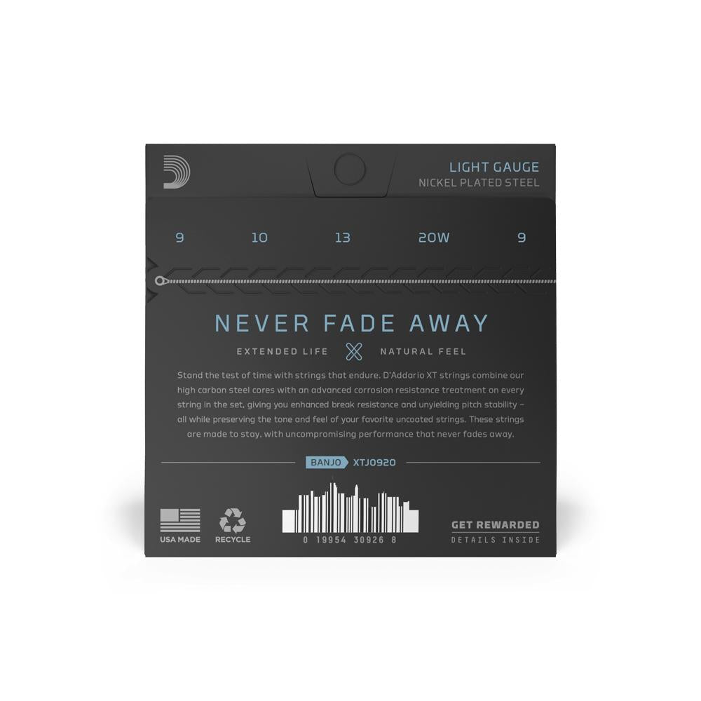 XT Banjo Nickel Plated Steel strings feature an advanced corrosion resistance treatment on every single string in the set, preserving the natural tone and feel of uncoated strings. Available in light and medium gauges.