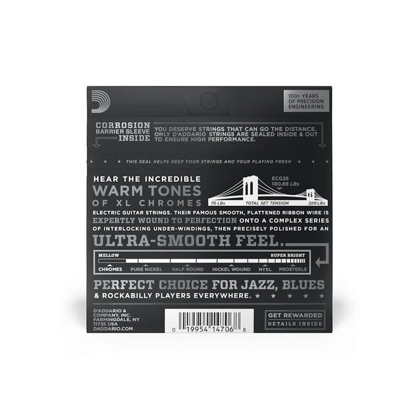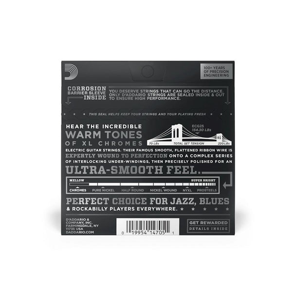 D'Addario XL Chromes Flat-Wound Electric Guitar Strings | 12-52 (Light)