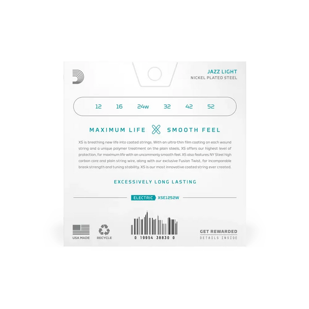 D'Addario XSE1252W, XS Nickel Plated Steel, Jazz Light, 12-52
