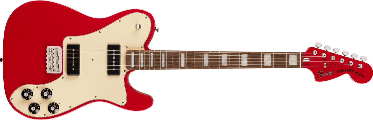 Conquer any stage with the Fender Chris Shiflett Cleaver Telecaster Deluxe in Dakota Red. A high-octane rock machine with a resonant alder body, nitrocellulose lacquer finish, and "belly cut" for comfort. Slash through the mix with dirty snarls and clean singing, just like the Foo Fighters' Chris Shiflett does every night.