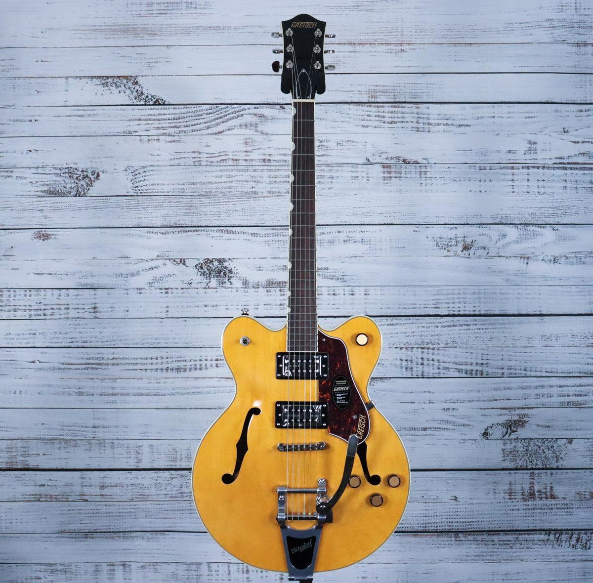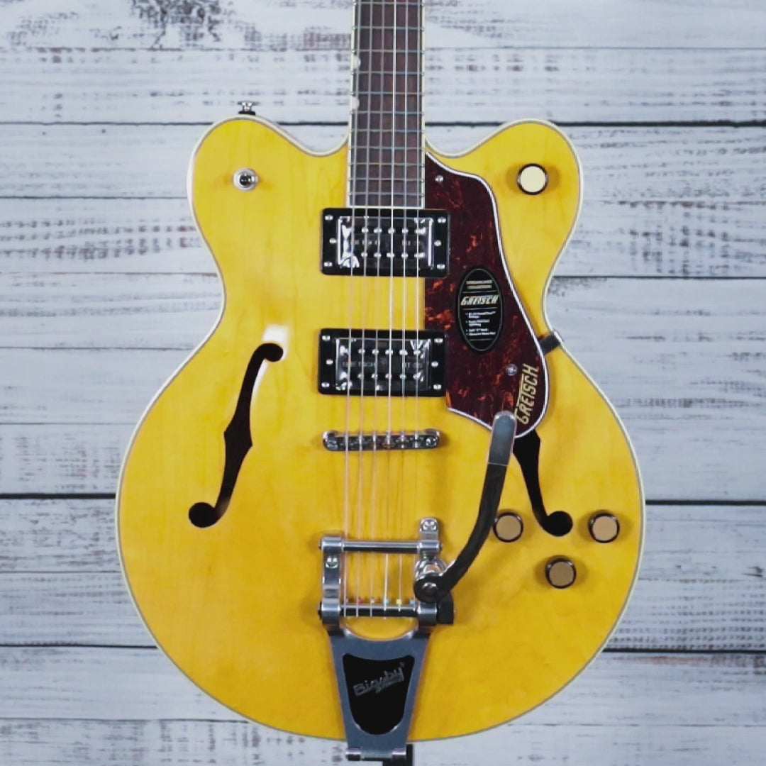 The Gretsch G2622T Streamliner Center Block Double-Cut with Bigsby® in Village Amber combines classic design with modern innovation. Featuring a center block for reduced feedback and enhanced sustain, this guitar delivers powerful, rich tones ideal for versatile playing styles. Its double-cut body offers comfortable access to higher frets, while the iconic Bigsby® vibrato adds expressive pitch modulation. Crafted for players seeking exceptional performance, style, and volume, the G2622T embodies the best of Gretsch heritage with contemporary features.