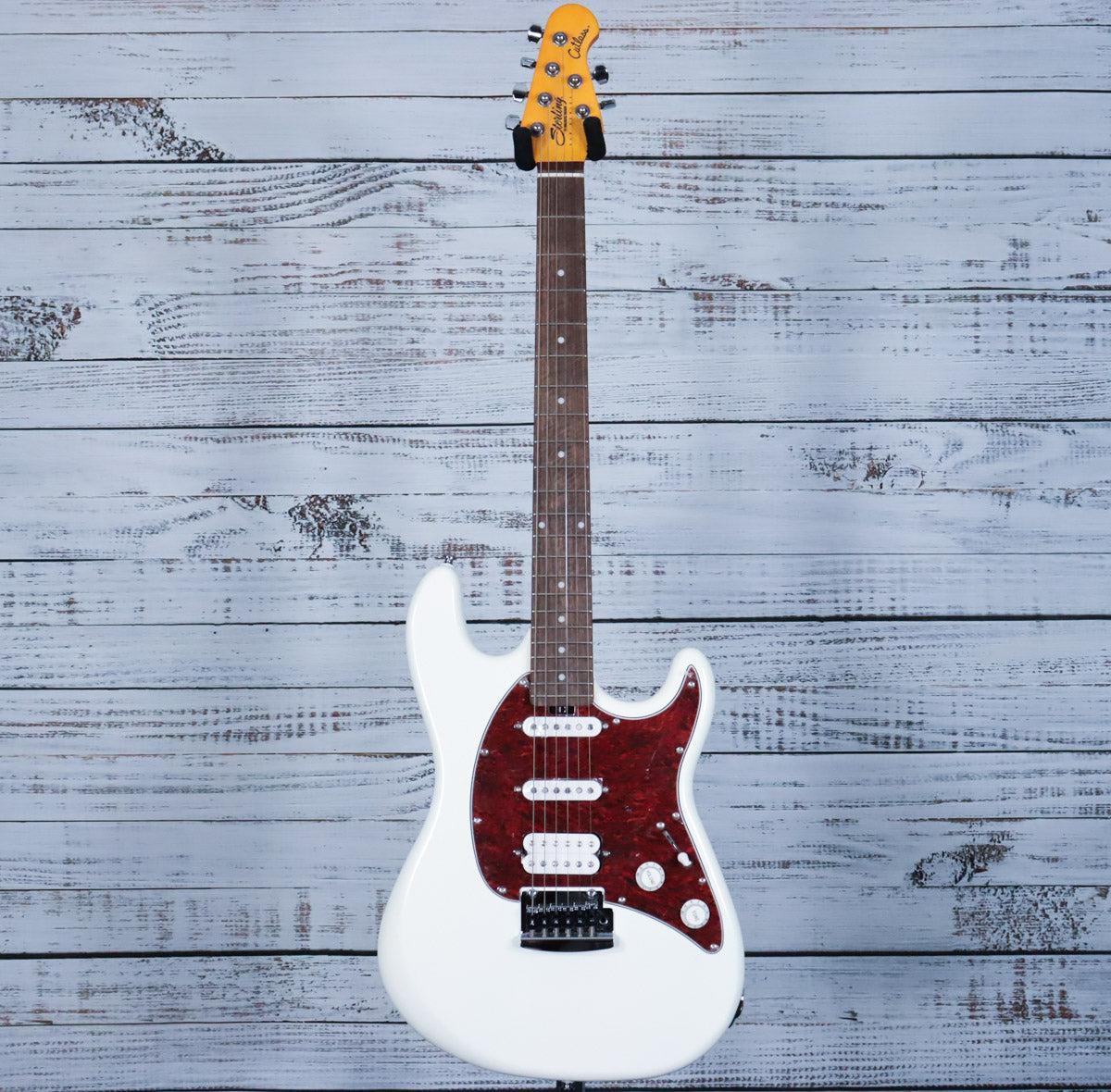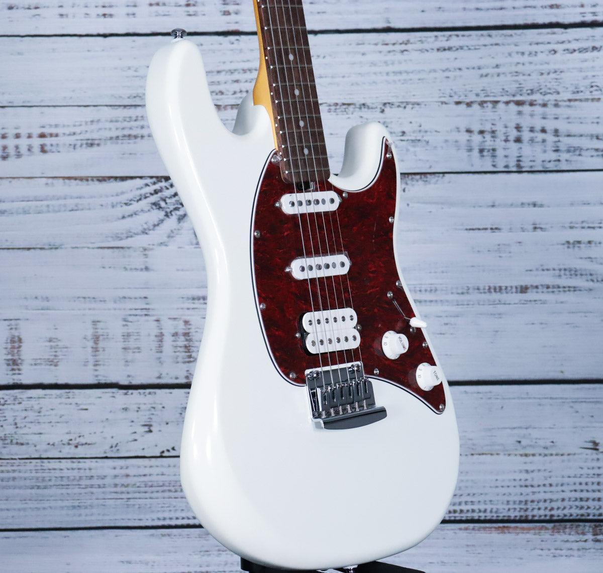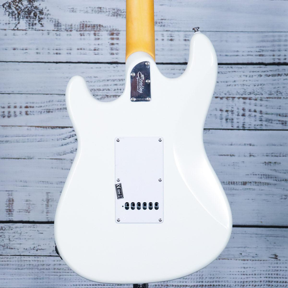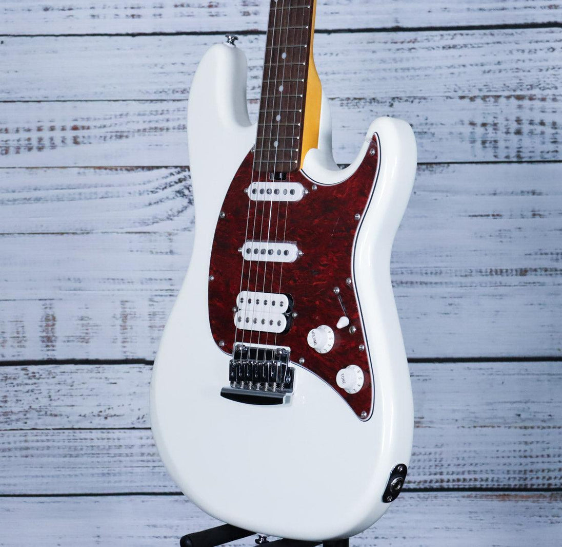 The Sterling Sub Series Cutlass Classic CT30 in Olympic White blends vintage charm with modern versatility. Featuring upgraded Alnico pickups, it delivers dynamic, rich tones suitable for any genre. Its classic stained neck and retro finishes add a distinctive aesthetic, while the HSS pickup configuration offers a wide sonic palette for precise expression. This guitar combines timeless design with enhanced playability, making it a dependable choice for seasoned musicians seeking both style and performance.