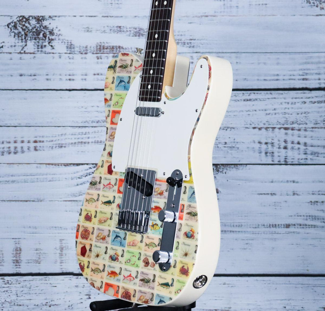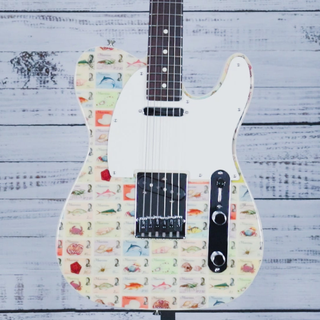 "We immigrated to the US in 1984. I only brought two things with me – an acoustic guitar from my father, Fender of course, and the stamp collection that he and I worked on. On a whim I took some of my UK stamps and made a guitar out of it. People liked it so much I kept picking other countries and the more countries I picked, the more interest grew in the collection so I decided, somewhat whimsically, I would do every