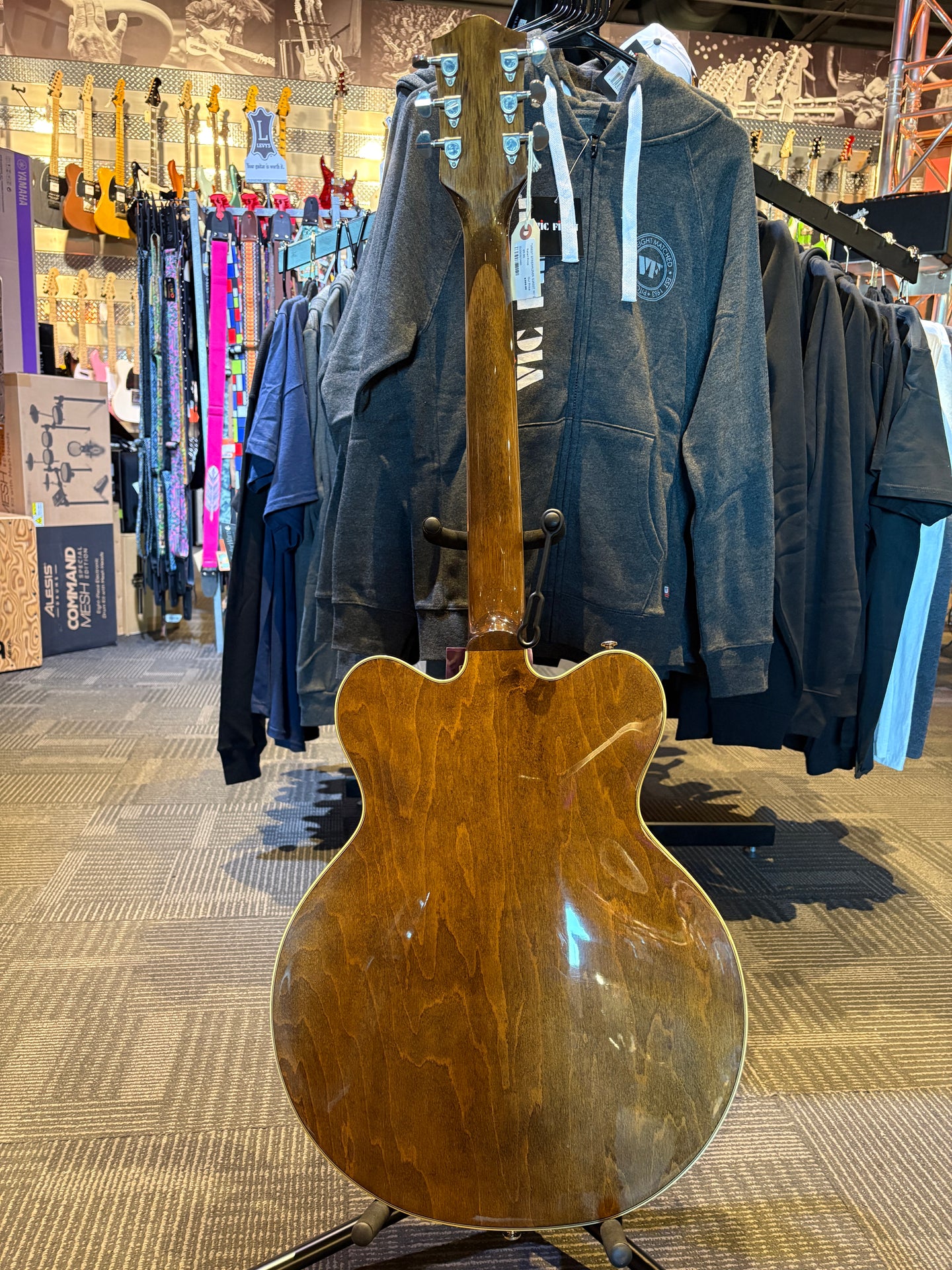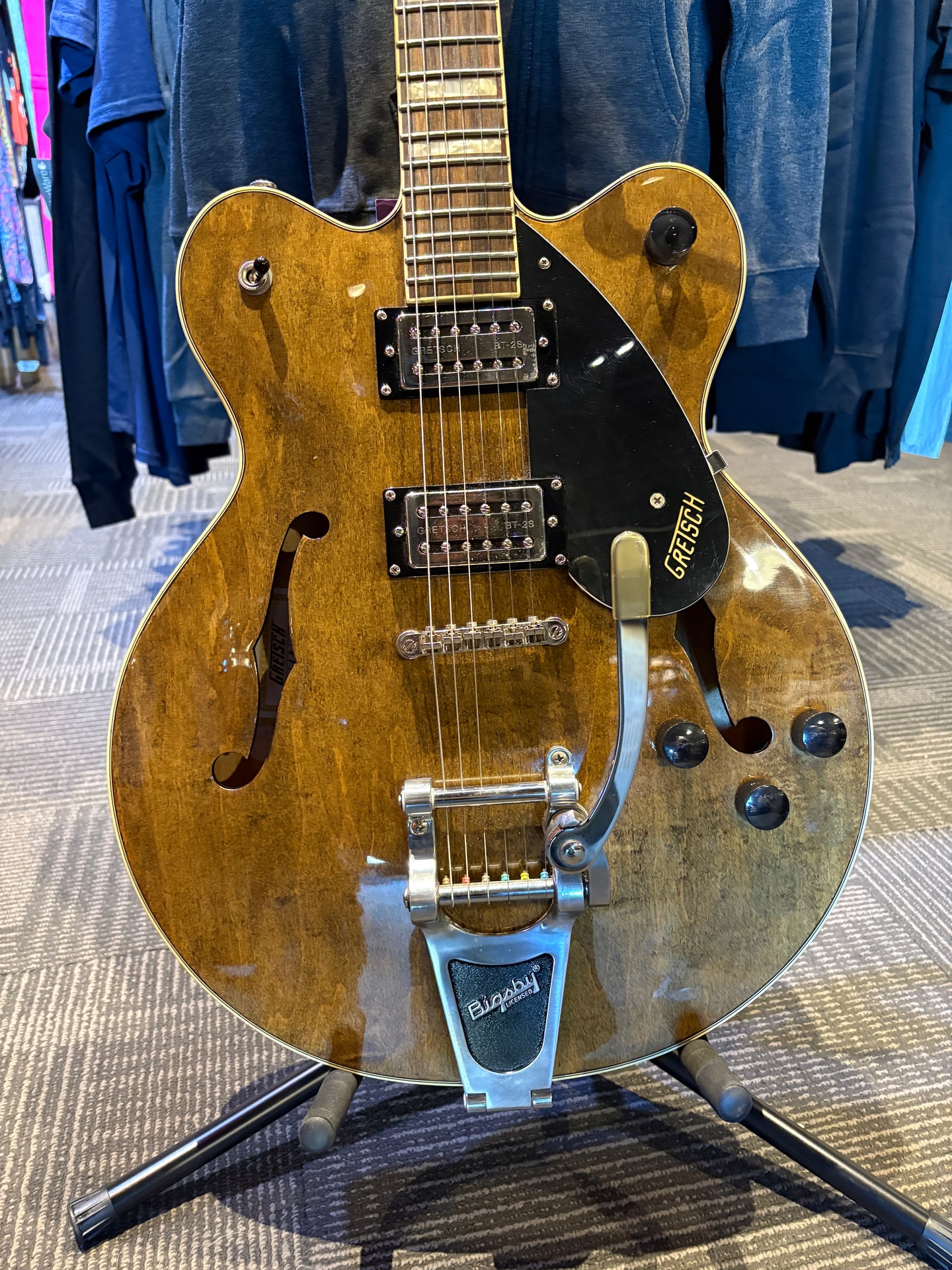 A used Gretsch G2622T Streamliner™ with Bigsby® vibrato, featuring a mahogany center block and Broad'Tron™ BT-2S pickup for powerful, feedback-resistant tone. Fast laurel fingerboard, vintage styling, and reliable tuning stability make this a versatile choice for any player seeking classic Gretsch character with modern performance. This used electric hollow body is in excellent condition and plays extremely well! This model, in an imperial stain finish is no longer in production.