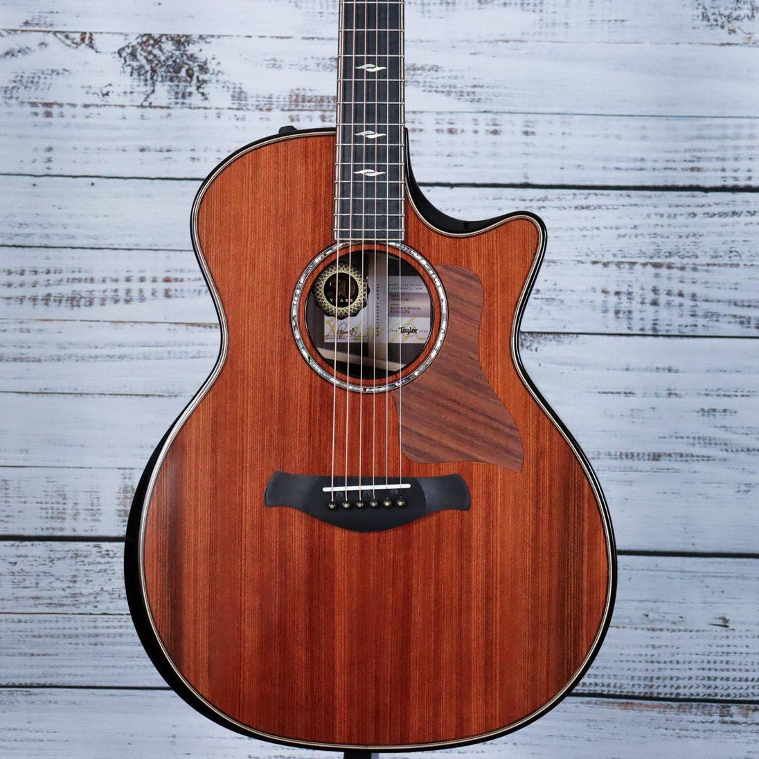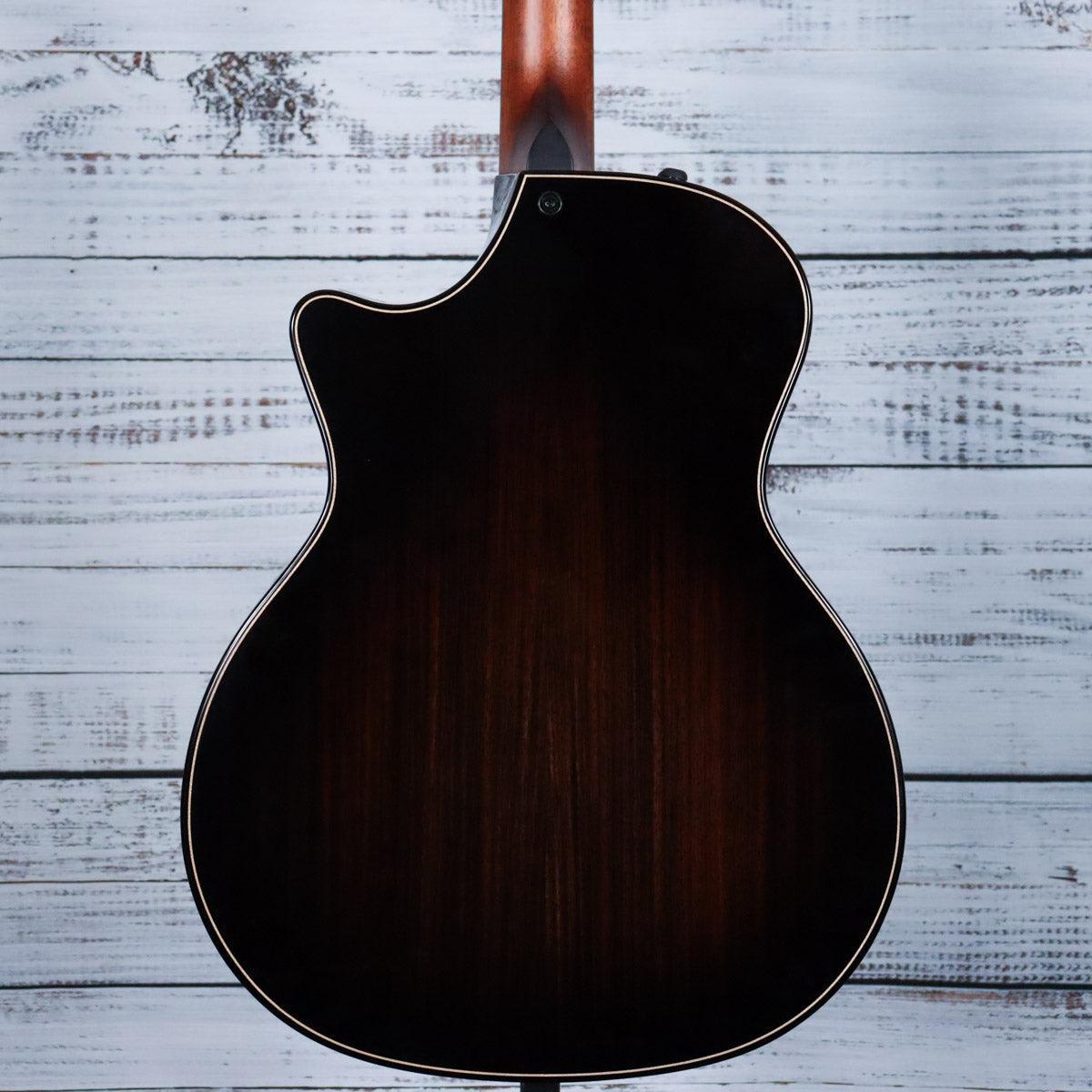 Experience the refined beauty and superior sound of the Taylor Builder's Edition 814ce 50th Anniversary guitar. Paired with Indian rosewood and sinker redwood, this limited edition model boasts a beveled armrest, cutaway, and V-Class bracing for ultimate comfort and projection. Limited edition appointments include gold mother-of-pearl logo and Element inlays.